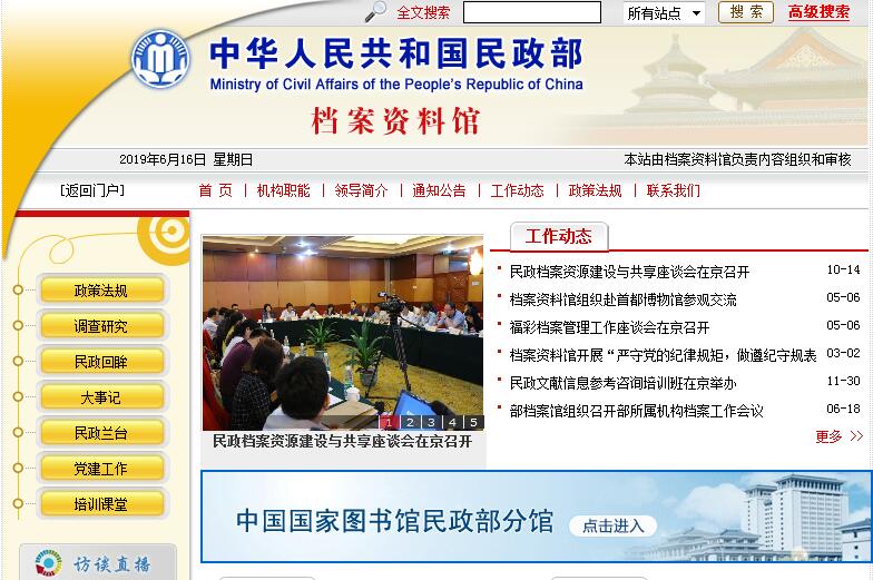 民政部檔案資料館(以下簡(jiǎn)稱檔案館)是民政部直屬全額撥款事業(yè)單位(相當(dāng)于正局級(jí)),由民政部辦公廳代管,受民政部委托承擔(dān)部分行政職能,下設(shè)6個(gè)室(處):辦公室、業(yè)務(wù)指導(dǎo)室、保管利用室、編研室、圖書室、民間組織檔案室。其主要職責(zé)是:(一)貫徹執(zhí)行國(guó)家檔案工作的有關(guān)法律、法規(guī)和方針政策,擬定民政專業(yè)檔案管理規(guī)章和民政部檔案管理的有關(guān)制度并組織實(shí)施;(二)監(jiān)督、指導(dǎo)部機(jī)關(guān)、部直屬單位和部管社團(tuán)的檔案工作(人事檔案工作除外);(三)指導(dǎo)民政系統(tǒng)的檔案工作并培訓(xùn)檔案工作人員;(四)統(tǒng)一管理并開發(fā)利用民政部檔案資料,為民政工作服務(wù),按期向中央檔案館移交檔案資料;(五)負(fù)責(zé)館屬圖書報(bào)刊資料的管理和利用;(六)承擔(dān)全國(guó)性民間組織檔案的管理及利用接待、查詢出證工作;(七)承擔(dān)部、廳領(lǐng)導(dǎo)交辦的其他事項(xiàng)。