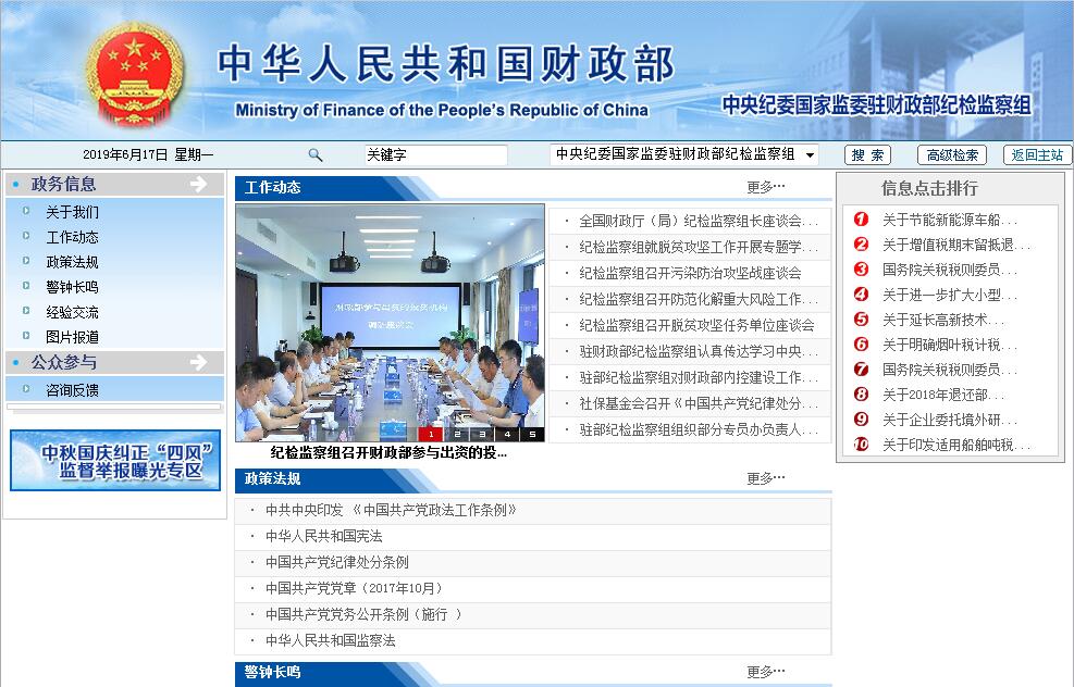 | 網(wǎng)站名稱: | 中央紀委國家監(jiān)委駐財政部紀檢監(jiān)察組 | ||