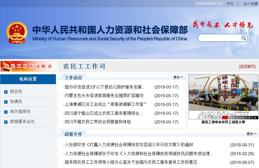 網(wǎng)站名稱(chēng): 人力資源和社會(huì)保障部農(nóng)民工工作司