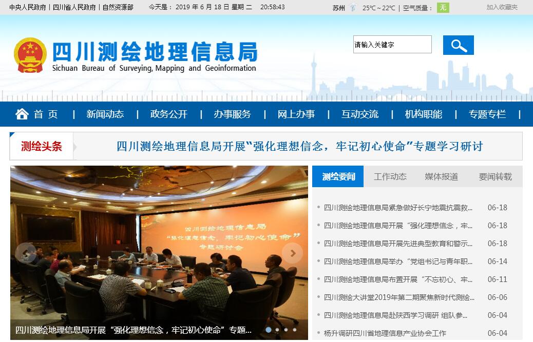 四川測繪地理信息局(四川省測繪地理信息局)組建于1960年,是自然資源部派出機構(gòu)和四川省測繪地理信息主管部門,承擔(dān)自然資源部下達的工作任務(wù),履行四川省人民政府賦予的工作職責(zé)。全局現(xiàn)有職工約2000人,其中專業(yè)技術(shù)人員1200余人。直屬事業(yè)單位9個:自然資源部第三大地測量隊(四川省第一測繪工程院)、自然資源部第三地理信息制圖院(四川省第二測繪地理信息工程院)、自然資源部第六地形測量隊(自然資源部地下管線勘測工程院、四川省第三測繪工程院)、自然資源部第三航測遙感院、自然資源部四川基礎(chǔ)地理信息中心(自然資源部四川測繪資料檔案館)、自然資源部四川測繪產(chǎn)品質(zhì)量監(jiān)督檢驗站(四川省測繪產(chǎn)品質(zhì)量監(jiān)督檢驗站)、四川測繪地理信息局測繪技術(shù)服務(wù)中心、成都測繪職工中等專業(yè)學(xué)校(西南測繪職工培訓(xùn)中心、武漢測繪科技大學(xué)西南函授站),全局形成了大地測量、攝影測量與遙感、地理信息系統(tǒng)、地下管線勘測、工程測量、地籍測量、地圖編印出版、互聯(lián)網(wǎng)地圖服務(wù)以及測繪成果管理與供應(yīng)、測繪產(chǎn)品監(jiān)督與檢驗、測繪技術(shù)教育與培訓(xùn)、測繪應(yīng)急保障等門類齊全的測繪地理信息綜合服務(wù)體系。其主要職責(zé)是:一、貫徹執(zhí)行國家測繪地理信息法律法規(guī)和政策,會同有關(guān)部門對執(zhí)行情況進行監(jiān)督檢查;研究擬訂測繪地理信息相關(guān)的地方性法規(guī)、規(guī)章草案;負責(zé)全省測繪地理信息法制建設(shè)和法制宣傳教育工作;負責(zé)全省測繪地理信息行政管理人員的行政執(zhí)法培訓(xùn)和行政執(zhí)法工作,提高本系統(tǒng)、本部門依法行政水平;依法查處權(quán)限范圍內(nèi)的各類測繪地理信息違法案件;組織開展行政執(zhí)法監(jiān)督、行政調(diào)解等工作,落實行政執(zhí)法責(zé)任制,負責(zé)有關(guān)的行政復(fù)議工作。二、負責(zé)管理全省基礎(chǔ)測繪工作,會同省政府有關(guān)部門編制全省基礎(chǔ)測繪規(guī)劃、重大測繪項目計劃和年度計劃并組織實施。三、負責(zé)全省中等以下城市和因建設(shè)、城市規(guī)劃、科學(xué)研究確需建設(shè)相對獨立的平面坐標(biāo)系統(tǒng)的審批工作;負責(zé)組織擬訂全省用于測繪的航空攝影與衛(wèi)星遙感計劃,統(tǒng)一管理全省航空攝影與衛(wèi)星遙感資料,協(xié)調(diào)數(shù)據(jù)的預(yù)處理與分發(fā)服務(wù);負責(zé)全省以測繪為目的的航空攝影與遙感的審查。四、依法管理全省測繪市場。監(jiān)督管理地理信息獲取與應(yīng)用;負責(zé)全省從事測繪活動單位的測繪資質(zhì)審查、發(fā)放資質(zhì)證書;負責(zé)全省測繪從業(yè)人員測繪作業(yè)證的發(fā)放、管理;負責(zé)省外測繪單位、外國的組織或個人在我省行政區(qū)域內(nèi)從事測繪活動的驗證、備案工作;負責(zé)監(jiān)督省內(nèi)重大測繪項目、重點測繪工程的招標(biāo)投標(biāo)。五、會同省政府土地行政主管部門編制全省地籍測繪規(guī)劃,按照地籍測繪規(guī)劃組織管理全省地籍測繪;按照國務(wù)院有關(guān)規(guī)定組織管理全省各級行政區(qū)域界線測繪工作,與省政府民政部門共同擬訂省內(nèi)鄉(xiāng)級行政區(qū)域界線的標(biāo)準(zhǔn)畫法圖,報省政府批準(zhǔn)后發(fā)布;監(jiān)督管理全省房產(chǎn)測繪工作。六、負責(zé)管理全省地圖編制出版工作,審核我省行政區(qū)域內(nèi)的公開地圖、內(nèi)部地圖、保密地圖和繪有中國圖形的示意圖;管理并審核地名在地圖上的表示;依法監(jiān)督管理全省地圖市場。七、管理全省基礎(chǔ)地理信息數(shù)據(jù)。組織提供測繪公共服務(wù)和應(yīng)急測繪保障,組織指導(dǎo)全省基礎(chǔ)地理信息社會化服務(wù);建立健全我省地理信息資源共建共享機制,構(gòu)建和管理我省基礎(chǔ)地理信息公共平臺;組織協(xié)調(diào)地理信息安全監(jiān)管工作;審核發(fā)布我省行政區(qū)域內(nèi)的重要地理信息數(shù)據(jù)。八、組織全省測繪成果接收、收集、整理、儲存并定期編制、公布測繪成果目錄;負責(zé)測繪成果密級管理;負責(zé)審批涉及國家秘密基礎(chǔ)測繪成果的提供使用和對外提供測繪成果的審批;負責(zé)管理全省測繪行業(yè)標(biāo)準(zhǔn)化工作和根據(jù)授權(quán)管理測繪行業(yè)的計量工作;負責(zé)全省測繪成果的質(zhì)量監(jiān)督,處理測繪成果質(zhì)量爭議。 九、負責(zé)指導(dǎo)全省測量標(biāo)志的管理和保護工作,審批永久性測量標(biāo)志的拆遷。十、研究制定全省測繪技術(shù)政策。組織全省重大測繪科技項目攻關(guān)、科技成果轉(zhuǎn)化,負責(zé)省測繪科技進步獎相關(guān)工作;歸口管理省級對外測繪科技和經(jīng)濟合作交流;配合有關(guān)部門組織全省測繪專業(yè)技術(shù)職務(wù)任職資格的評審工作;會同有關(guān)部門按職責(zé)分工負責(zé)全省注冊測繪師制度的實施與監(jiān)督管理;負責(zé)組織全省測繪行業(yè)特有工種職業(yè)技能鑒定工作。十一、指導(dǎo)市(州)、縣(市、區(qū))和省直有關(guān)部門的測繪工作。十二、監(jiān)督、管理全省測繪事業(yè)費和