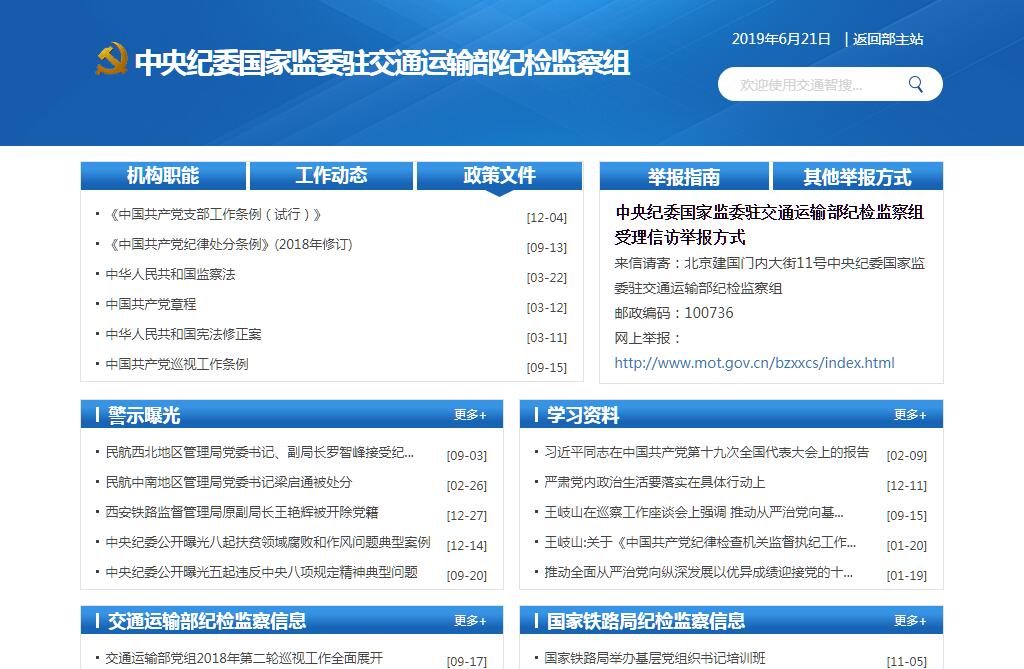網(wǎng)站名稱: 中央紀(jì)委國(guó)家監(jiān)委駐交通運(yùn)輸部紀(jì)檢監(jiān)察組