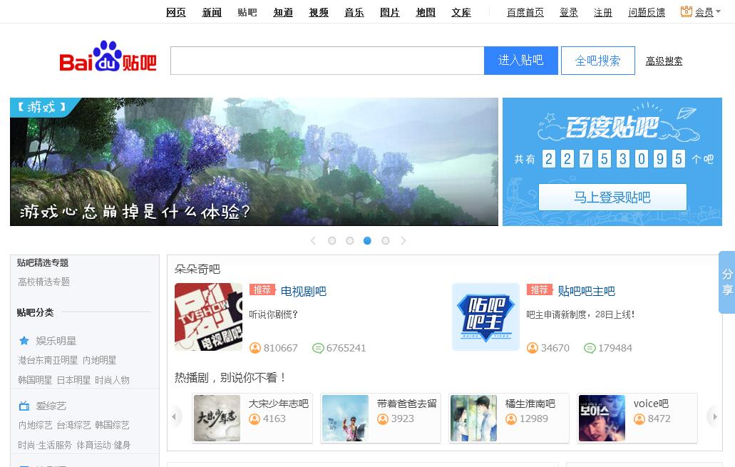 | 網(wǎng)站簡介: 百度貼吧——全球最大的中文社區(qū)。貼吧的使命是讓志同道合的人相聚。不論是大眾話題還是小眾話題,都能精準(zhǔn)地聚集大批同好網(wǎng)友,展示自我風(fēng)采,結(jié)交知音,搭建別具特色的“興趣主題“互動平臺。貼吧目錄涵蓋游戲、地區(qū)、文學(xué)、動漫、娛樂明星、生活、體育、電腦數(shù)碼等方方面面,是全球最大的中文交流平臺,它為人們提供一個表達(dá)和交流思想的自由網(wǎng)絡(luò)空間,并以此匯集志同道合的網(wǎng)友。 |