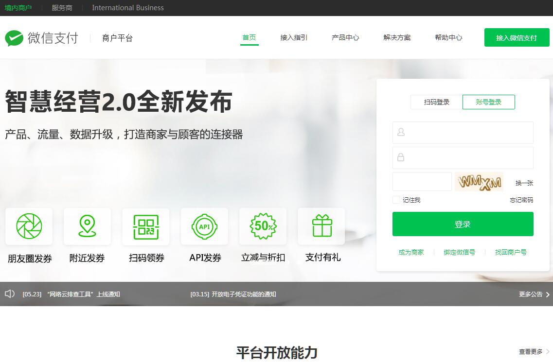 微信支付(https://pay.weixin.qq.com)是騰訊集團旗下中國領(lǐng)先的第三方支付平臺,一直致力于為用戶和企業(yè)提供安全、便捷、專業(yè)的在線支付服務。以“微信支付,不止支付”為核心理念,為個人用戶創(chuàng)造了多種便民服務和應用場景,為各類企業(yè)以及小微商戶提供專業(yè)的收款能力,運營能力,資金結(jié)算解決方案,以及安全保障。企業(yè)、商品、門店、用戶已經(jīng)通過微信連在了一起,讓智慧生活,變成了現(xiàn)實。2018年8月15日,騰訊發(fā)布的第二季度及中期綜合業(yè)績報告顯示,微信和WeChat的合并月活躍賬戶數(shù)達10.58億。以微信支付為核心的“智慧生活解決方案”至今已覆蓋數(shù)百萬門店、30多個行業(yè),用戶可以使用微信支付來看病、購物、吃飯、旅游、交水電費等,微信支付已深入生活的方方面面。微信支付自2013年8月正式上線以來,從支付開始,逐步深入生活,成為新商業(yè)價值的牽引器。2014年春節(jié),微信紅包第一次爆發(fā);2014年1月,微信支付與滴滴合作引爆打車市場;2014年3月,微信支付向商戶全面開放;2014年8月,微信支付智慧生活解決方案發(fā)布;2015年春節(jié),微信春晚“搖一搖”,向全國人民發(fā)放5億現(xiàn)金紅包;2015年9月,微信支付面向服務商全面開放;2015年11月,正式開放跨境支付能力;2016年4月,推出微信支付星火計劃,扶持服務商成長;2016年9月,“微信買單”功能上線,零門檻接入,幫助中小商戶甩掉技術(shù)包袱;2016年12月,騰訊移動支付月活躍賬戶及日均支付交易筆數(shù)均超過6億;2017年7月3日,微信支付上線全新微信支付境外開放平臺,降低境外商戶接入門檻;2018年6月,騰訊移動支付業(yè)務活躍賬戶已逾8億。