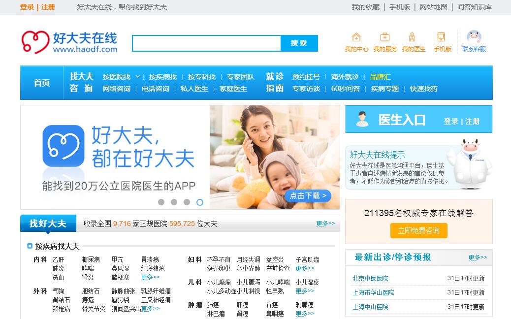 好大夫在線創(chuàng)立于2006年,是中國領(lǐng)先的互聯(lián)網(wǎng)醫(yī)療平臺。經(jīng)過12年的誠信運營,已經(jīng)在圖文問診、電話問診、遠(yuǎn)程視頻門診、預(yù)約和轉(zhuǎn)診、診后疾病管理、線上復(fù)診、家庭醫(yī)生、醫(yī)生點評、知識科普等多個領(lǐng)域取得領(lǐng)先地位。好大夫在線擁有國內(nèi)數(shù)量最多、質(zhì)量最優(yōu)、活躍度最高的醫(yī)生群體。截至2018年12月,好大夫在線收錄了全國9379家正規(guī)醫(yī)院的58萬名醫(yī)生信息。其中,21萬名醫(yī)生在平臺上實名注冊、親自使用,直接向患者提供各種線上醫(yī)療服務(wù)。在這些活躍醫(yī)生中,三甲醫(yī)院的醫(yī)生比例占到78%,能夠給予患者足夠權(quán)威的診療建議、和合法的線上診療服務(wù)。用戶可以通過好大夫在線APP、PC版網(wǎng)站、手機版網(wǎng)站、微信公眾號、微信小程序等多個平臺,方便地聯(lián)系到全國21萬公立醫(yī)院的醫(yī)生,一站式解決線上服務(wù)、線下就診等各種醫(yī)療問題。好大夫在線(www.haodf.com)隸屬互動峰科技(北京)有限公司,互動峰科技(北京)有限公司是在北京工商局正式注冊的企業(yè)單位,許可經(jīng)營項目是互聯(lián)網(wǎng)信息服務(wù)。好大夫在線(www.haodf.com)是經(jīng)北京市衛(wèi)生局審核批準(zhǔn)可以開展“互聯(lián)網(wǎng)醫(yī)療衛(wèi)生信息服務(wù)”的網(wǎng)站?;臃蹇萍迹ū本┯邢薰緩氖碌摹耙蛱鼐W(wǎng)信息服務(wù)業(yè)務(wù)”是經(jīng)北京市電信管理局審批通過的,服務(wù)網(wǎng)站為好大夫在線(www.haodf.com)。