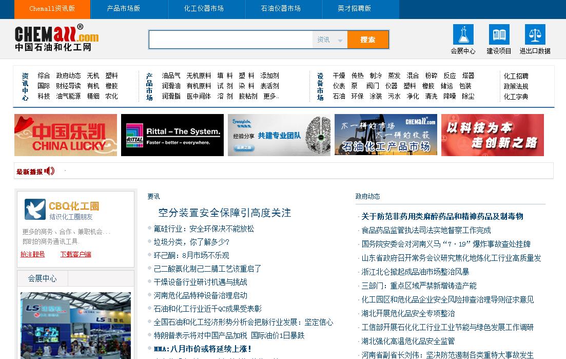 中國石油和化工網(wǎng)(www.chemall.com.cn)創(chuàng)立于2000年3月,由北京朗津網(wǎng)絡(luò)信息技術(shù)有限公司運(yùn)營。經(jīng)過十多年的發(fā)展,在行業(yè)內(nèi)廣大客戶的厚愛和支持下,注冊客戶9萬余家,曾評為中國行業(yè)網(wǎng)站100強(qiáng)。中國石油和化工網(wǎng)以信息資訊、化學(xué)品市場、化工設(shè)備市場、人才招聘為主線的大型綜合性門戶商務(wù)網(wǎng)站?!百|(zhì)量決定企業(yè)生命,服務(wù)決定企業(yè)前途”。我們深知只有腳踏實(shí)地研究客戶需求,實(shí)實(shí)在在地為客戶服務(wù),為客戶提供最為卓越領(lǐng)先的產(chǎn)品、最優(yōu)質(zhì)的服務(wù),才能實(shí)現(xiàn)企業(yè)的快速、持續(xù)、健康的發(fā)展。在全國人民實(shí)現(xiàn)中國夢的美好時代,中國石油和化工網(wǎng)全體員工以“執(zhí)著、創(chuàng)新、追求卓越”的企業(yè)文化,腳踏實(shí)地、注重細(xì)節(jié)、創(chuàng)新領(lǐng)先,不斷向行業(yè)和客戶推出優(yōu)質(zhì)的產(chǎn)品和服務(wù)。我們努力不斷給客戶一個驚喜,一個進(jìn)步。希望我們的努力能夠成為客戶在產(chǎn)品銷售、采購、物流、技術(shù)領(lǐng)域、人才招聘、信息資訊等核心需求或一般需求方面“實(shí)用、高效、得力”的最優(yōu)秀助手和平臺,一個“質(zhì)優(yōu)、價廉”真正為客戶做事、客戶信賴、客戶滿意的行業(yè)互聯(lián)網(wǎng)綜合性平臺。