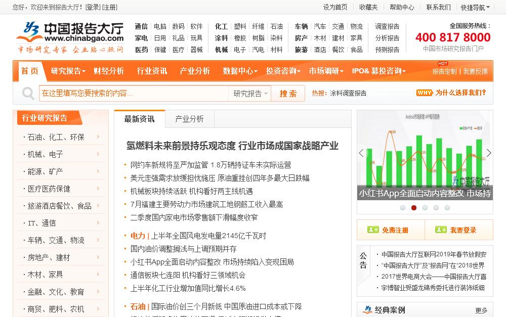 報(bào)告大廳(http://www.chinabgao.com/)是由宇博智業(yè)機(jī)構(gòu)旗下廈門宇博智業(yè)信息技術(shù)有限公司開通并運(yùn)營(yíng)的一家大型專業(yè)化市場(chǎng)研究網(wǎng)站,成立于2002年10月,提供針對(duì)企業(yè)用戶的各類信息,如深度研究報(bào)告、市場(chǎng)調(diào)查、統(tǒng)計(jì)數(shù)據(jù)等。為了滿足企業(yè)對(duì)原始數(shù)據(jù)的需求,也為了能給企業(yè)提供更為全面和客觀的研究報(bào)告,報(bào)告大廳與國(guó)內(nèi)各大數(shù)據(jù)源(包括政府機(jī)構(gòu)、行業(yè)協(xié)會(huì)、圖書館、信息中心等權(quán)威機(jī)構(gòu))建立起戰(zhàn)略合作關(guān)系。經(jīng)過(guò)多年的努力,報(bào)告大廳與國(guó)內(nèi)100多家最優(yōu)質(zhì)研究公司建立良好的合作關(guān)系,推出超過(guò)100000份有價(jià)值的研究報(bào)告,報(bào)告大廳目標(biāo)是打造一個(gè)真正的一站式服務(wù)的多用戶報(bào)告平臺(tái)。報(bào)告大廳匯聚全國(guó)各大市場(chǎng)研究信息生產(chǎn)商的研究成果,正是依托獨(dú)有的資源優(yōu)勢(shì),為客戶提供最準(zhǔn)確、最及時(shí)、最權(quán)威、最專業(yè)的研究報(bào)告。
