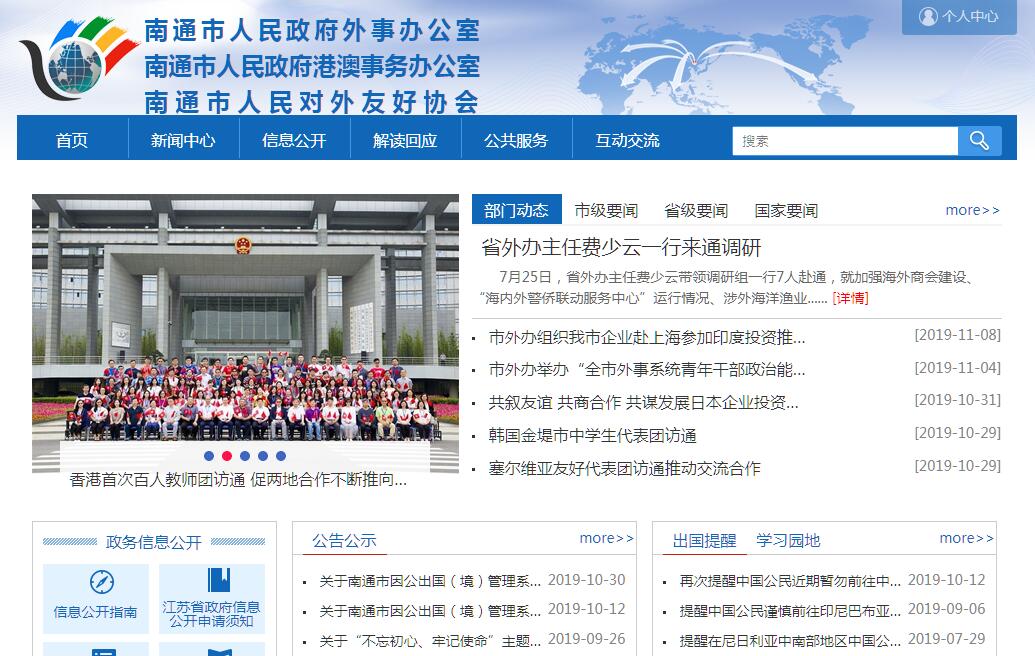 南通市人民政府外事辦公室,為市政府工作部門,掛市政府港澳事務(wù)辦公室牌子。其主要職責(zé)是:一、貫徹執(zhí)行黨和國家對外方針政策和法律法規(guī),落實(shí)省市有關(guān)外事工作的指示和決定,負(fù)責(zé)政策指導(dǎo)、業(yè)務(wù)考核、監(jiān)督檢查工作,歸口管理、統(tǒng)籌協(xié)調(diào)全市各領(lǐng)域?qū)ν饨涣髋c合作,起草外事工作相關(guān)政策規(guī)劃。二、研究分析各國發(fā)展動態(tài)和政策走向,圍繞我市經(jīng)濟(jì)建設(shè)、社會發(fā)展和對外開放,為市委、市政府提供外事工作決策的建議。三、貫徹執(zhí)行中央對香港、澳門的政策規(guī)定,統(tǒng)籌協(xié)調(diào)和歸口管理我市與香港、澳門特別行政區(qū)往來工作。四、統(tǒng)籌安排并承辦市委、市人大常委會、市政府、市政協(xié)領(lǐng)導(dǎo)同志的出訪和國內(nèi)外事活動事項。五、接待來我市訪問的黨賓、國賓和其他重要外賓。承辦外國有關(guān)人員來訪事宜。指導(dǎo)全市重要外事活動的禮賓工作。會同有關(guān)部門做好涉外參觀單位的建設(shè)工作。六、承擔(dān)我市與外國有關(guān)領(lǐng)事機(jī)構(gòu)、國際組織的業(yè)務(wù)聯(lián)系和交涉工作。審核管理在我市舉辦的國際會議。七、負(fù)責(zé)全市因公出國(境)工作的歸口管理、協(xié)調(diào)服務(wù)和監(jiān)督工作。在授權(quán)范圍內(nèi),審核相關(guān)人員因公臨時出國(境)事項,承擔(dān)我市因公出國(境)人員的證照申辦業(yè)務(wù)。八、擬訂我市因公出國(境)管理規(guī)定和因公護(hù)照、通行證頒發(fā)管理實(shí)施細(xì)則。會同有關(guān)部門落實(shí)外事紀(jì)律及保密制度。九、承辦我市對外交往事務(wù),歸口管理全市與外國友好城市、友好交流城市以及其他結(jié)好單位的交往活動。指導(dǎo)我市民間對外交往工作。承擔(dān)授予外國人榮譽(yù)稱號、名譽(yù)職務(wù)和給予重要獎勵等有關(guān)工作。十、指導(dǎo)有關(guān)部門做好來我市外國人的管理工作,依法保障來我市外國人的合法權(quán)益。負(fù)責(zé)海外僑務(wù)工作。指導(dǎo)、協(xié)調(diào)、管理我市社會組織對外交往事宜。會同有關(guān)部門協(xié)調(diào)處理重要涉外事件和案件,協(xié)調(diào)指導(dǎo)我市境外機(jī)構(gòu)、公民安全與合法權(quán)益保護(hù)工作。指導(dǎo)全市涉外應(yīng)急事務(wù)處理。十一、負(fù)責(zé)我市外事干部和涉外人員的教育培訓(xùn)工作。會同有關(guān)部門進(jìn)行對外宣傳和群眾性外事教育。十二、負(fù)責(zé)來我市采訪的外國記者和相關(guān)新聞機(jī)構(gòu)的管理工作。十三、完成市委、市政府交辦的其他任務(wù)。