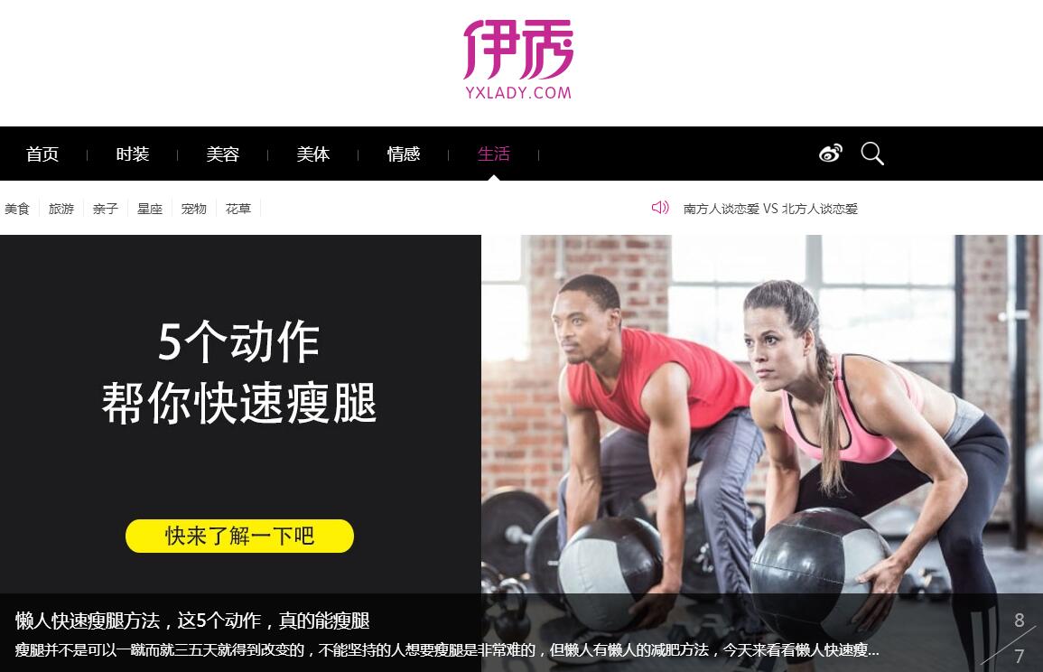 | 網(wǎng)站簡介: 伊秀網(wǎng)是女人門戶網(wǎng)站和互聯(lián)網(wǎng)新媒體,憑借健康的資訊內(nèi)容給廣大網(wǎng)民帶來了良好的用戶體驗 ,其獨特一幟的媒體營銷理念,在女人圈里面有垂直影響力。 |
