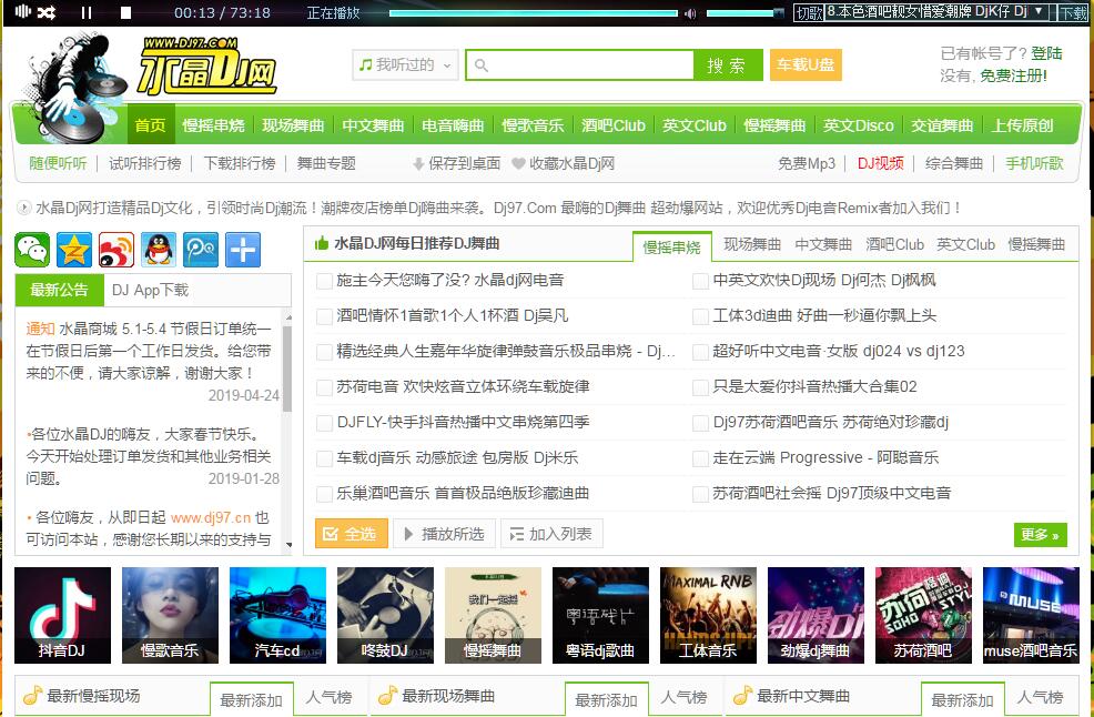 水晶Dj網(wǎng)(Www.Dj97.Com)是一家專業(yè)的Dj資訊網(wǎng)站,也是國內(nèi)開站歷史較早的舞曲試聽資訊網(wǎng)站,本網(wǎng)站匯集了現(xiàn)場舞曲、中文舞曲、Hip-Hop、R&B、慢搖舞曲、等各類型舞曲,從專業(yè)舞曲試聽到串燒制作、從Dj技巧到混音后期制作均有詳細(xì)介紹!水晶Dj網(wǎng)是國內(nèi)知名的專業(yè)Dj網(wǎng)站,其合作Dj伙伴遍及全國各大城市。水晶Dj網(wǎng)擁有廣闊的Dj和舞曲愛好者的支持、完善的服務(wù)體系,旨在推廣國內(nèi)舞曲廣泛傳播并引領(lǐng)舞曲潮流,訪問本站既可使您領(lǐng)略國內(nèi)Dj文化的發(fā)展、變化,也可享受水晶Dj網(wǎng)給您的工作、生活、學(xué)習(xí)帶來的無窮樂趣。感謝您對水晶Dj網(wǎng)多年來一直的關(guān)心與支持,使我們不斷地成長!我們將努力創(chuàng)造及發(fā)掘國內(nèi)個人Dj原創(chuàng)舞曲,運(yùn)用網(wǎng)絡(luò)優(yōu)勢,為大家奉獻(xiàn)更新、更多的舞曲音樂,提供更多的相關(guān)服務(wù)!水晶Dj網(wǎng)以“提供最新最好最嗨最炫的舞曲給廣大網(wǎng)民”為宗旨,以“推動國內(nèi)舞曲文化發(fā)展”為己任,將不斷探索,不斷完善,信守承諾,最惠顧客,期望與您攜手邁進(jìn)網(wǎng)絡(luò)化、數(shù)字化的Dj新生活。