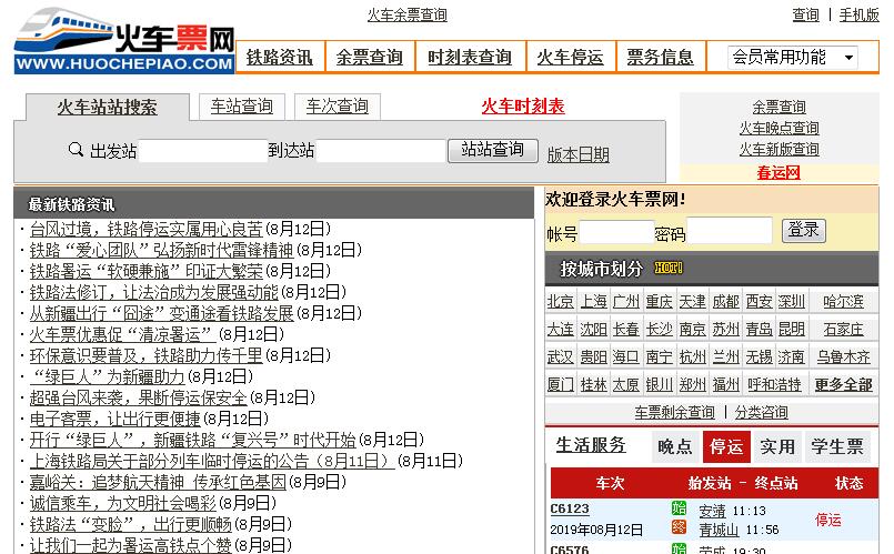 您當(dāng)前的位置:網(wǎng)站首頁(yè) > 目錄主分類(lèi) > 綜合其他 > 其他 > 其他網(wǎng)站 > 火車(chē)票網(wǎng)
