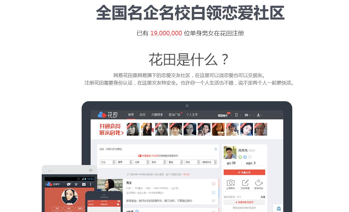 | 網(wǎng)站簡介: 花田是網(wǎng)易旗下戀愛交友約會平臺,優(yōu)質(zhì)單身男女全部身份驗(yàn)證,可安全交友。智能匹配系統(tǒng),同城交友精準(zhǔn)推薦。來花田交友約會最靠譜! |
