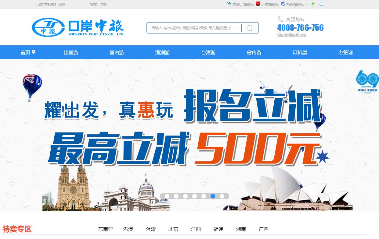 深圳市口岸中國(guó)旅行社有限公司成立于1950年(簡(jiǎn)稱:口岸中旅),下屬有深圳近100家營(yíng)業(yè)部、國(guó)內(nèi)10多家分公司,內(nèi)設(shè)亞洲、美洲、歐洲、非洲、亞太、南亞、日韓、臺(tái)灣、大客戶、簽證、會(huì)獎(jiǎng)、車務(wù)、入境、電子商務(wù),以及省內(nèi)、國(guó)內(nèi)、出境等業(yè)務(wù)部;口岸中旅是與深圳野生動(dòng)物園、深旅出租公司、僑社客運(yùn)站、華僑酒店、西麗湖度假村等10多家企業(yè)同屬深圳市旅游(集團(tuán))股份有限公司。素有“僑社”之稱的口岸中旅是深圳成立較早、歷史悠久的旅行社,其旅游目的地分布于太平洋板塊、印度洋板塊、亞歐板塊、美洲板塊和南極洲板塊,年平均接待服務(wù)過(guò)往游客2000萬(wàn)/人次,綜合服務(wù)能力近15年連續(xù)穩(wěn)居深圳同業(yè)之首,是全國(guó)百?gòu)?qiáng)國(guó)際旅行社、文明旅游先進(jìn)單位、深圳知名品牌、深圳老字號(hào)企業(yè),也是深圳市委、市政府授予的“文明企業(yè)”。