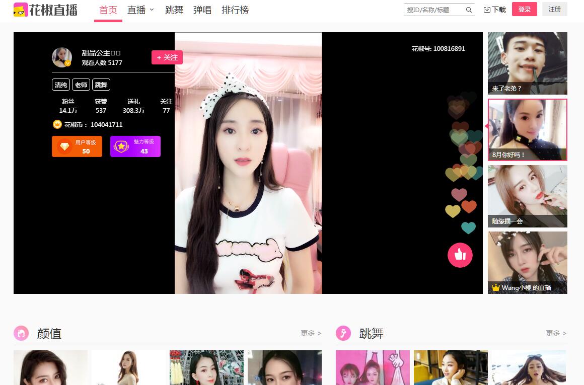 | 網(wǎng)站簡(jiǎn)介: 花椒直播,一個(gè)聚集超高顏值明星大咖、美女帥哥、熱門網(wǎng)紅、?;ㄐ2?、逗比萌妹的手機(jī)直播社交平臺(tái),這里有明星發(fā)布會(huì)、花邊新聞、才藝展示、生活趣聞、聊天互動(dòng)、唱歌跳舞等等海量?jī)?nèi)容?;ń分辈?,全球首創(chuàng)萌顏直播,創(chuàng)造最萌潮流。 |