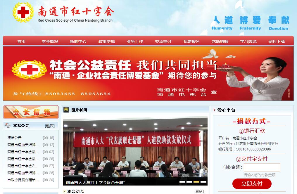 1957年10月成立,1982年9月8日恢復(fù),歸市衛(wèi)生局聯(lián)系。2007年3月改為現(xiàn)行管理體制。南通市紅十字會為市政府領(lǐng)導(dǎo)聯(lián)系的獨立機(jī)構(gòu),列群團(tuán)機(jī)關(guān)序列,參照公務(wù)員管理,正處級建制。紅十字會是國際性人道救援組織,與聯(lián)合國、奧委會并稱三大國際組織。國際紅十字運動于1905年進(jìn)入中國大地;1927年2月,由清末狀員張謇先生之子張孝若公使發(fā)起創(chuàng)建中國紅十字會南通分會。解放后,1957年10月成立南通市紅十字會,文革期間于1967年被迫停止工作,1982年9月8日恢復(fù),歸市衛(wèi)生局聯(lián)系。2007年3月改為現(xiàn)行管理體制?!吨腥A人民共和國紅十字會法》和《江蘇省實施<中華人民共和國紅十字會法>辦法》頒布實施后,在政府及有關(guān)部門的支持下,紅十字事業(yè)得到迅速發(fā)展。全市各級紅十字會以保護(hù)人的生命和健康、發(fā)揚人道主義精神、促進(jìn)和平進(jìn)步事業(yè)為宗旨,大力弘揚“人道、博愛、奉獻(xiàn)”的紅十字精神,努力當(dāng)好政府人道工作助手。在備災(zāi)救災(zāi)、社會救助、群眾救護(hù)、社區(qū)服務(wù)、紅十字青少年活動、推動無償獻(xiàn)血、捐獻(xiàn)造血干細(xì)胞、艾滋病防治宣傳教育、臺港澳事務(wù)、增進(jìn)國際交流與合作等方面做了大量工作,在某些方面起到了政府和其他團(tuán)體不可替代的特殊作用。紅十字事業(yè)是造福社會、惠及人類的崇高偉大的事業(yè),需要全社會的關(guān)心、支持和參與。如今,全市所轄的5縣(市)4區(qū)均設(shè)立紅十字會機(jī)構(gòu),分布在全市各條戰(zhàn)線上的935個紅十字基層組織和70萬紅十字會員正高舉人道博愛奉獻(xiàn)旗幟,為建設(shè)和諧社會作出更大的貢獻(xiàn)。