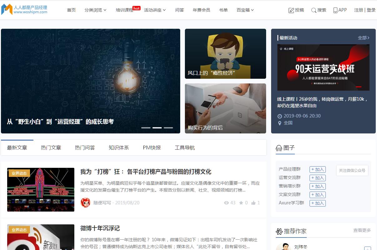 | 網(wǎng)站簡介: 人人都是產(chǎn)品經(jīng)理致力為產(chǎn)品新人、產(chǎn)品經(jīng)理等廣大產(chǎn)品愛好者打造一個良好的學習交流平臺。深度剖析國內(nèi)外互聯(lián)網(wǎng)業(yè)內(nèi)動態(tài),分享產(chǎn)品設計、交互設計、視覺設計、用戶體驗設計、產(chǎn)品運營、產(chǎn)品市場和項目管理等專業(yè)產(chǎn)品知識。人人都是產(chǎn)品經(jīng)理(woshipm.com)是以產(chǎn)品經(jīng)理、運營為核心的學習、交流、分享平臺,集媒體、培訓、社群為一體,全方位服務產(chǎn)品人和運營人,成立8年舉辦在線講座500+期,線下分享會300+場,產(chǎn)品經(jīng)理大會、運營大會20+場,覆蓋北上廣深杭成都等15個城市,在行業(yè)有較高的影響力和知名度。平臺聚集了眾多BAT美團京東滴滴360小米網(wǎng)易等知名互聯(lián)網(wǎng)公司產(chǎn)品總監(jiān)和運營總監(jiān),他們在這里與你一起成長。 |