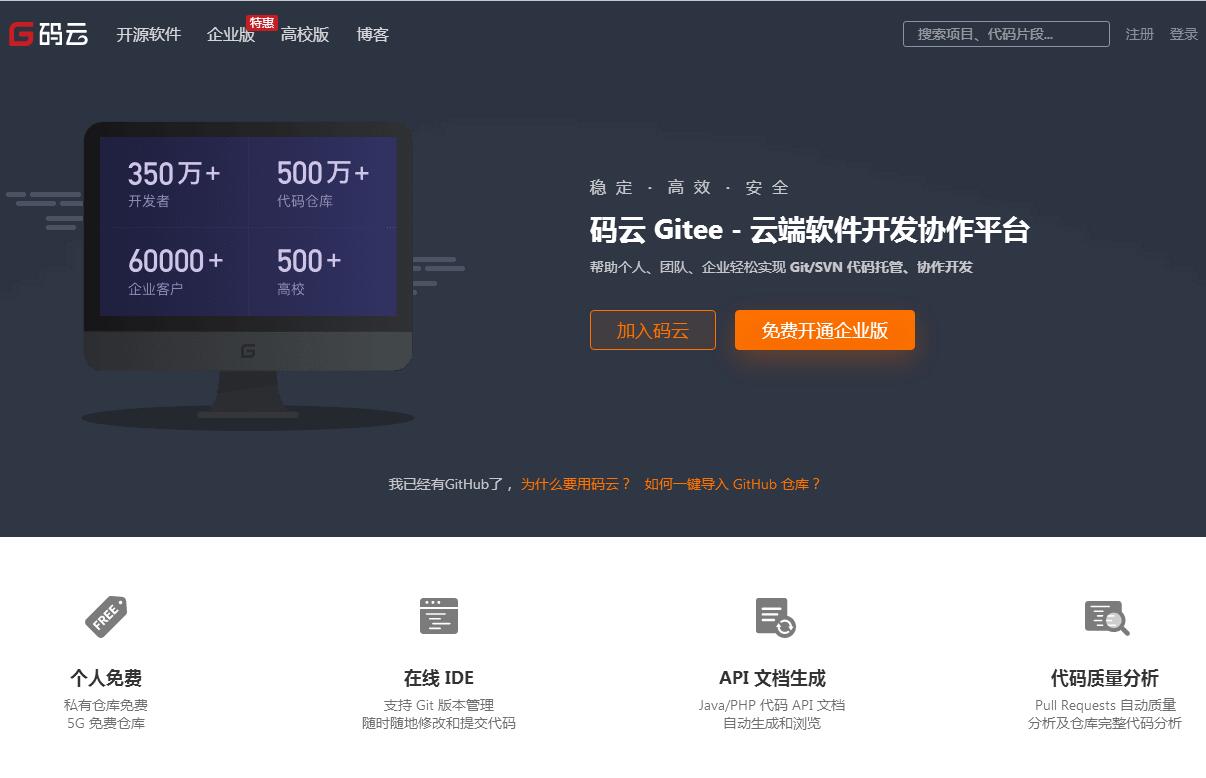 | 網(wǎng)站簡介: 碼云( gitee.com )代碼托管·協(xié)作開發(fā)平臺,開發(fā)者超過 300 萬,托管項目超過 500 萬,匯聚幾乎所有本土原創(chuàng)開源項目,并于 2016 年推出企業(yè)版,提供企業(yè)級代碼托管服務(wù),成為開發(fā)領(lǐng)域領(lǐng)先的 SaaS 服務(wù)提供商。 |