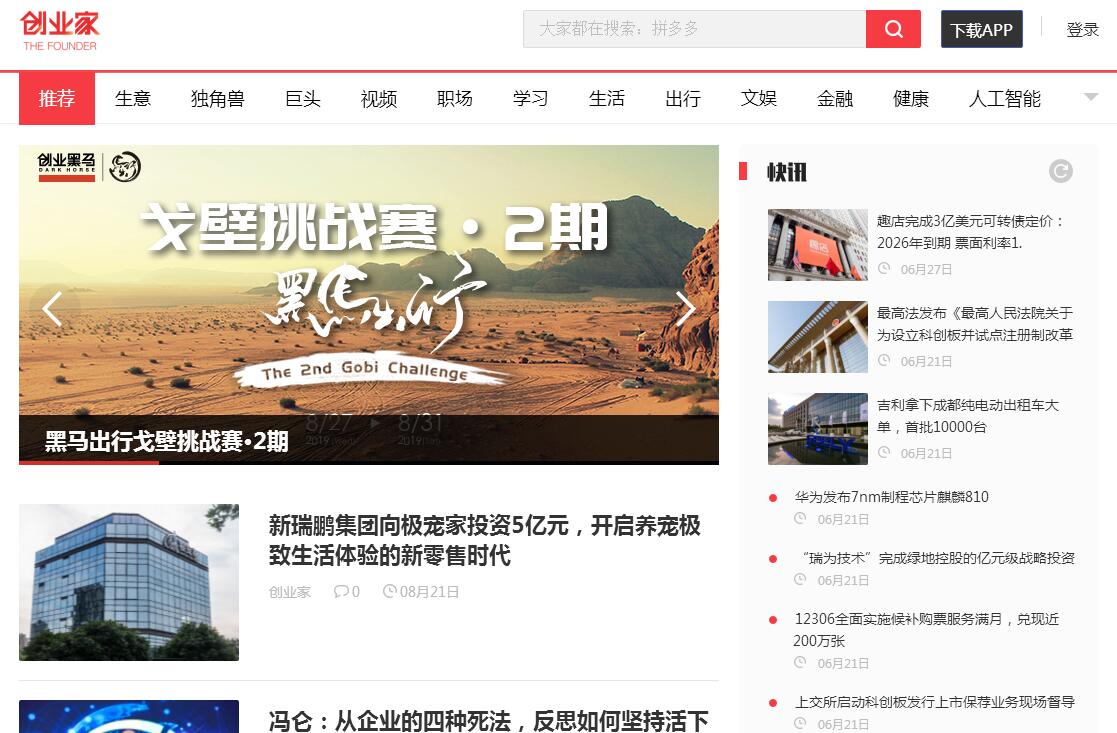 | 網(wǎng)站簡(jiǎn)介: 創(chuàng)業(yè)家,前身是創(chuàng)刊于2008年的《創(chuàng)業(yè)家》雜志,其創(chuàng)始人牛文文是國(guó)內(nèi)資深財(cái)經(jīng)媒體領(lǐng)導(dǎo)人,著名的媒體評(píng)論家、企業(yè)觀察家、記者,曾連續(xù)兩屆獲得三項(xiàng)中國(guó)新聞獎(jiǎng)。創(chuàng)業(yè)家的理念宗旨是“讀懂中國(guó)7000種賺錢生意”,關(guān)注中國(guó)具有創(chuàng)業(yè)家精神的新企業(yè)領(lǐng)袖。實(shí)時(shí)創(chuàng)業(yè)資訊報(bào)道,地方產(chǎn)業(yè)政策解讀,直擊行業(yè)熱點(diǎn)新聞資訊,讓內(nèi)容更有深度。覆蓋47個(gè)城市、擁有28個(gè)地方分會(huì)、19個(gè)行業(yè)分會(huì)的黑馬社群成就創(chuàng)業(yè)家獨(dú)有的生態(tài)勢(shì)能,涵蓋教育、智能硬件、餐飲等領(lǐng)域。6萬(wàn)+黑馬社群用戶的關(guān)系網(wǎng)絡(luò)、7大原創(chuàng)媒體品牌、10大戰(zhàn)略合作平臺(tái),內(nèi)容全網(wǎng)全平臺(tái)分發(fā),精準(zhǔn)影響1億新商業(yè)人群。我們致力于把一線城市的優(yōu)秀商機(jī)帶到二三四線城市去,打通創(chuàng)新與創(chuàng)富的世界,幫助本地生意人鏈接全國(guó)資源的成長(zhǎng)課程——生意學(xué)院。聯(lián)合各行業(yè)成功生意人與資深專家,面向所有渴望創(chuàng)富的生意人,打造線上學(xué)習(xí)的“生意加速器”。成功的生意人親口傳授成功路徑,最真實(shí)的生意人防坑指導(dǎo)和實(shí)操經(jīng)驗(yàn),系統(tǒng)提高會(huì)員的行業(yè)判斷能力、項(xiàng)目選擇能力、落地運(yùn)營(yíng)能力。面向全國(guó)的城市合伙人制度,幫助當(dāng)?shù)仄胀▌?chuàng)業(yè)者提高創(chuàng)業(yè)的成功率,創(chuàng)業(yè)家通過(guò)品牌賦能、標(biāo)準(zhǔn)化運(yùn)營(yíng)輔導(dǎo)、強(qiáng)資源流量加持以及線下的研討會(huì)、推薦會(huì),幫助企業(yè)建設(shè)一個(gè)本地連接全國(guó)的生意人圈子。賦能商機(jī),嚴(yán)選的50+ “陽(yáng)光招商”項(xiàng)目,如樂(lè)友孕嬰童、雕刻時(shí)光、唱吧麥頌等,每月定期發(fā)布不同行業(yè)的“陽(yáng)光品牌榜”,結(jié)識(shí)同行,共同探討如何把生意做好,學(xué)習(xí)別人,總結(jié)自己,互相分享,把榜單變成人脈,把人脈變成財(cái)富。創(chuàng)業(yè)家,是一個(gè)為你發(fā)掘商機(jī),幫你發(fā)財(cái)致富的網(wǎng)站。 |