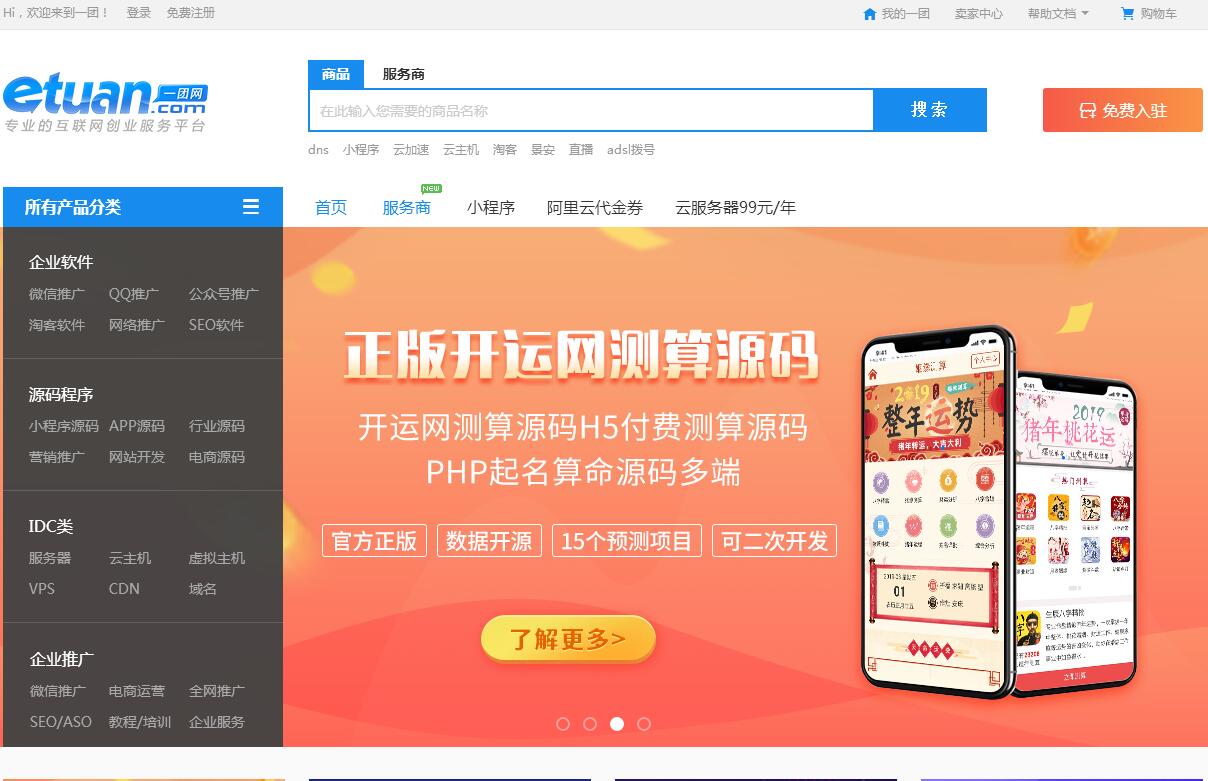 一團(tuán)網(wǎng) - 國(guó)內(nèi)領(lǐng)先的站長(zhǎng)交易平臺(tái)。一團(tuán)網(wǎng)為您精選企業(yè)軟件,源碼系統(tǒng),APP開發(fā),公眾號(hào)推廣,建站程序源碼系統(tǒng),網(wǎng)絡(luò)培訓(xùn),云服務(wù)器等產(chǎn)品優(yōu)惠活動(dòng)!超低折扣!平臺(tái)提供全方位交易保障。