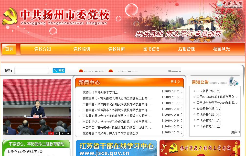 中共揚(yáng)州市委黨校、揚(yáng)州市行政學(xué)院是中共揚(yáng)州市委、揚(yáng)州市人民政府直接領(lǐng)導(dǎo)下的培訓(xùn)輪訓(xùn)黨員領(lǐng)導(dǎo)干部和理論干部的主渠道、主陣地,是市委、市政府的重要部門?,F(xiàn)校址坐落于風(fēng)景秀麗的揚(yáng)州市新城西區(qū)。中共揚(yáng)州市委黨校建立于1983年,前身是創(chuàng)建于1949年的“中共揚(yáng)州地委黨?!?。原校址位于揚(yáng)州西郊念四路90號(hào),1993年遷至揚(yáng)州市文昌西路10號(hào),2008年遷至新城西區(qū)七里甸路1號(hào)(現(xiàn)校址)。全校占地面積102畝,建筑面積約7.76萬(wàn)平方米,綠化面積4.4萬(wàn)平米,建有學(xué)員宿舍樓、教學(xué)學(xué)術(shù)圖書綜合樓、辦公樓,配有中央黨校遠(yuǎn)程教學(xué)網(wǎng)b級(jí)站、遠(yuǎn)程教學(xué)及視頻互動(dòng)系統(tǒng)、聯(lián)通教室和學(xué)員宿舍的校園網(wǎng)絡(luò)系統(tǒng)、多媒體教室等現(xiàn)代教學(xué)設(shè)施,可同時(shí)容納1600多人開會(huì)學(xué)習(xí)、1200人住宿、2000人同時(shí)就餐。設(shè)施先進(jìn)、功能配套、環(huán)境優(yōu)美,硬件設(shè)施在全省乃至全國(guó)處于一流市級(jí)黨校行列。學(xué)?,F(xiàn)有在職人員62人,其中教師28名,正教授3人,副教授8人,講師14人,還聘請(qǐng)一批著名專家學(xué)者任客座教授?,F(xiàn)有經(jīng)濟(jì)學(xué)、行管法學(xué)、哲學(xué)社會(huì)學(xué)、科學(xué)社會(huì)主義、黨史黨建5個(gè)教研室,行政教輔部門有辦公室、教務(wù)培訓(xùn)處、科研處、函授處、研究生辦、行政處、財(cái)務(wù)處、工會(huì)、圖書館、揚(yáng)州市廉政文化研究中心等10個(gè)處室。有《理論與實(shí)踐》、《咨政參考》2份刊物。近年來(lái),在市委的正確領(lǐng)導(dǎo)下, 學(xué)校牢牢把握“圍繞全市發(fā)展大局,服務(wù)‘三個(gè)揚(yáng)州’建設(shè)”主題和“提升軟實(shí)力,創(chuàng)新創(chuàng)優(yōu),作為爭(zhēng)先”主線,緊緊圍繞建設(shè)“高質(zhì)量、有特色”的一流市級(jí)黨校目標(biāo),大力弘揚(yáng)“忠誠(chéng)敬業(yè)、博達(dá)篤行、求是創(chuàng)新”校風(fēng)精神,著力構(gòu)建“以教學(xué)為中心、以科研為支撐、以人才為核心、以學(xué)科為基礎(chǔ)、以校風(fēng)為保障”“五位一體”的工作布局,學(xué)校工作科學(xué)化現(xiàn)代化水平不斷跨上新臺(tái)階。學(xué)校被評(píng)為“全國(guó)黨校系統(tǒng)人口理論教學(xué)科研先進(jìn)單位”、“全省黨校系統(tǒng)優(yōu)秀教學(xué)組織獎(jiǎng)”、“全省黨校系統(tǒng)優(yōu)秀科研組織獎(jiǎng)”、“全省黨校系統(tǒng)行政后勤工作先進(jìn)集體”、“江蘇省園林式單位”、“全省黨校系統(tǒng)人口理論教育工作先進(jìn)集體”等。教學(xué)改革形成鮮明特色。以“專題化”為核心調(diào)訓(xùn)干部,組織班次,開展教學(xué),形成了“專題化輪訓(xùn)、專題化組班、專題化教學(xué)”的輪訓(xùn)新模式,實(shí)現(xiàn)了組織要求、崗位需求和干部個(gè)人追求的有機(jī)結(jié)合。一是實(shí)行專題化輪訓(xùn),在提高干部輪訓(xùn)實(shí)效性上求突破。緊扣“推進(jìn)‘兩個(gè)率先’,建設(shè)‘三個(gè)揚(yáng)州’和世界名城”的總體目標(biāo),緊跟市委市政府的各項(xiàng)重大決策部署,緊貼廣大干部的實(shí)際需求,形成了以需求為導(dǎo)向的輪訓(xùn)專題生成機(jī)制。科學(xué)設(shè)置了“轉(zhuǎn)型發(fā)展與創(chuàng)新?lián)P州、現(xiàn)代服務(wù)業(yè)與文化旅游產(chǎn)業(yè)、財(cái)稅與資本運(yùn)作、城市發(fā)展與精致?lián)P州、城鄉(xiāng)統(tǒng)籌與新農(nóng)村建設(shè)、社會(huì)建設(shè)與幸福揚(yáng)州、法治揚(yáng)州與社會(huì)管理創(chuàng)新、黨建科學(xué)化”等8個(gè)專題培訓(xùn)模塊。由市委組織部和市委黨校共同制定輪訓(xùn)計(jì)劃,系統(tǒng)排定三年的專題菜單,由干部自主選擇輪訓(xùn)專題和參訓(xùn)時(shí)間,滾動(dòng)安排每年春秋季主體班的輪訓(xùn)專題,確保按專題三年輪訓(xùn)一遍干部。二是實(shí)行專題化組班,在提高干部輪訓(xùn)針對(duì)性上求創(chuàng)新。打破按干部層級(jí)組班的傳統(tǒng)做法,按專題組織學(xué)員,設(shè)置班次。采用公共課的形式,將理論武裝、黨性修養(yǎng)、道德品質(zhì)教育貫穿輪訓(xùn)全過(guò)程。采用專題課的形式,分類列出64個(gè)專業(yè)課程,著力提高干部推進(jìn)科學(xué)發(fā)展、促進(jìn)社會(huì)和諧、建設(shè)世界名城的素質(zhì)和能力。構(gòu)建了學(xué)員黨校雙向評(píng)價(jià),正副班主任雙人負(fù)責(zé),班級(jí)學(xué)校雙重考勤,組織部政治輔導(dǎo)員全程參與的“三雙一員”班級(jí)管理模式。三是實(shí)行專題化教學(xué),在提高干部輪訓(xùn)實(shí)踐性上求實(shí)效。堅(jiān)持“走出去”,組織全體教師到國(guó)內(nèi)知名高校進(jìn)行全員培訓(xùn);堅(jiān)持“請(qǐng)進(jìn)來(lái)”,邀請(qǐng)名師大家、部門領(lǐng)導(dǎo)、一線實(shí)踐者擔(dān)任兼職教師來(lái)校授課;堅(jiān)持“沉下去”,每年組織一次“揚(yáng)州市經(jīng)濟(jì)社會(huì)發(fā)展情況縣(市、區(qū))調(diào)研行”活動(dòng),定期選派中青年教