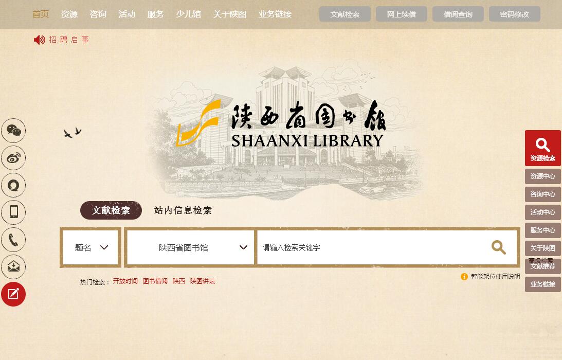 網(wǎng)站名稱: 陜西省圖書館