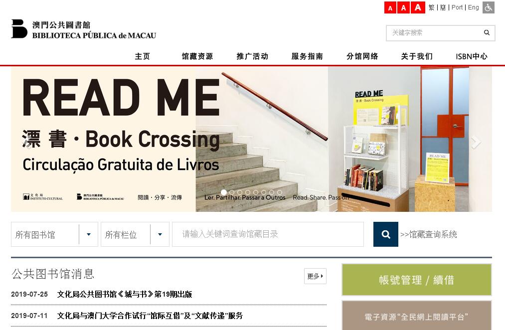 澳門公共圖書館創(chuàng)建于1895年,隸屬文化局公共圖書館管理廳,由15間公共圖書館, 1間西文古籍圖書館、1輛流動圖書車和澳門國際標準書號中心組成。澳門公共圖書館供借閱的紙本或電子資料逾百萬冊(件),當中包括一般書籍、報章、期刊、文獻、影音資料及各類電子資源等,涵蓋各個學科領(lǐng)域,藉以滿足大眾對社會、教育、資訊或休閑等多方面知識的需求。澳門公共圖書館以本澳的利益為基礎(chǔ),致力為社會不同層面的市民提供各項完善的資源與服務,并積極推廣本地閱讀風氣,鼓勵及培養(yǎng)全民主動學習,讓閱讀融入生活。此外,執(zhí)行法定收藏制度,蒐集、組織、保存及推廣利用澳門地方文獻,建立澳門總書庫也是公共圖書館的重要任務,其中澳門國際標準書號中心為本澳出版者提供國際標準書號(ISBN)、國際標準期刊號(ISSN)和國際標準錄音錄像資料代碼(ISRC)申辦服務,并開發(fā)了“澳門出版物數(shù)據(jù)庫”、“澳門出版者數(shù)據(jù)庫”,在保存及管理本地出版資料工作上扮演著不可或缺的角色。澳門公共圖書館歷史悠久,創(chuàng)館至今已有120年,跨越三個世紀的歲月,致力為市民提供更完善、更便捷、更多元的公共圖書館服務。回溯澳門中央圖書館的歷史,經(jīng)歷了曲折的演變過程。1893年葡萄牙皇室頒令于澳門開設(shè)國立利宵中學及國立圖書館;到1895年9月28日澳門國立利宵中學成立,附屬利宵中學的澳門國立圖書館對外開放。當時因資源不足,圖書館形同虛設(shè),及后圖書館跟隨利宵中學遷往峰景酒店大樓和塔石的殘疾人收容所。至十九世紀二十年代末,經(jīng)市政廳同意撥出市政廳大樓內(nèi)兩個房間以供國立圖書館專用;接下來的三十年內(nèi),澳門國立圖書館開始建立一套公共圖書館架構(gòu)和收藏制度,包括1931年編制公共圖書館人員制度,1941年訂定規(guī)則,要求所有本澳出版商需向圖書館呈繳兩份印刷品,1952年易名為“國立圖書館”,并按照葡國國立圖書館的規(guī)章與“法定收藏”的待遇,接收葡萄牙及海外省書刊。1956年何東爵士在港病逝,后人按其遺囑將位于澳門崗頂前地三號的別墅贈與澳門政府,并建立一座公共圖書館,同時捐贈25,000港元,用以購置圖書。1958年,何東圖書館正式對外開放。隨著社會變遷,圖書館藏書量不斷增加。1962年上任的圖書館館長路易士?貢沙格?高美士(Luís Gonzaga Gomes),是土生葡人,亦是一位學識淵博的漢學家、教育家,上任后,他大規(guī)模整理裝訂澳門各個時期的報紙和刊物,并策略性地構(gòu)想圖書館發(fā)展的未來,曾于1965年建議另覓館址擴充國立圖書館的規(guī)模。上世紀八、九十年代是澳門國立圖書館迅速發(fā)展的時代,1983年10月28日時任總督高斯達,在荷蘭園正街為澳門國立圖書館新大樓剪綵,圖書館從此獨立地擁有一座優(yōu)美而設(shè)施齊全的大樓,成為現(xiàn)時的澳門中央圖書館的總館。原來的市政廳圖書館(即現(xiàn)時的議事亭藏書樓)被設(shè)為分館,主要收藏1950年以前出版的西文古籍。同年設(shè)立路環(huán)圖書館,成為首間在離島服務的公共圖書館。1986年首架流動圖書車投入服務,1988年望廈圖書館開幕。1994年,澳門國立圖書館易名為“澳門中央圖書館",圖書館的發(fā)展也進入了新里程,青洲圖書館、紅街市圖書館等分館相繼建立。2000年,國際標準書號中心成立,從此澳門的出版品可以擁有本地的國際標準書號。適值澳門中央圖書館成立120周年,2015年9月,氹仔圖書館隆重開幕。此外,原屬民政總署管轄的七間圖書館,當中五間為由黃營均基金會捐資籌設(shè),并以已故秘魯華僑黃營均先生命名;黃先生為廣東番禺人,年幼奮發(fā)自學,后遠赴秘魯營商,八十年代退休定居澳門,捐出積蓄創(chuàng)立黃營均基金會,并于十年間先后與政府合作興建多座社區(qū)圖書館,當中包括1996年成立的紀念孫中山公園黃營均圖書館、1999年成立的白鴿巢公園黃營均圖書館、2004年成立的黑沙環(huán)公園黃營均圖書館及2005年成立的氹仔黃營均圖書館,為有志求學者提供自我學習及汲取知識之場所,亦為澳門圖書館事業(yè)作出重大貢獻。2011年7月,黑沙環(huán)公園黃營均圖書館館內(nèi)兒童閱覽區(qū)分拆,于鄰近地點設(shè)立黑沙環(huán)公園黃營均兒童圖書館。另外兩間原屬民政總署管轄的圖書館,分別為何賢公園圖書館,于1996年啟用,該館于2005年因地區(qū)重整而暫時閉館,于2009年2月10日重新開放;另一間為配合下環(huán)街市重建計劃而于2009年落成的下環(huán)圖書館。2015年12月14日,為配合澳門特區(qū)文化事業(yè)的發(fā)展,以及理順公共行政架構(gòu)職能的工作,據(jù)第20/2015號行政法規(guī),將原屬民政總署文化職能、相關(guān)人員及設(shè)施併入文化局,并制訂了《文化局的組織及運作》行政法規(guī)。文化局改組后,公共圖書館管理廳(原“澳門中央圖書館”)設(shè)立圖書資源發(fā)展處和讀者服務及推廣處兩個處級部門。此行政法規(guī)自2016年1月1日起生效,隨著文化局公共圖書館和原民政總署圖書館的整併,以及各新館在未來的日子里陸續(xù)建成,使澳門公共圖書館的服務遍佈澳門,深植每個社區(qū)。