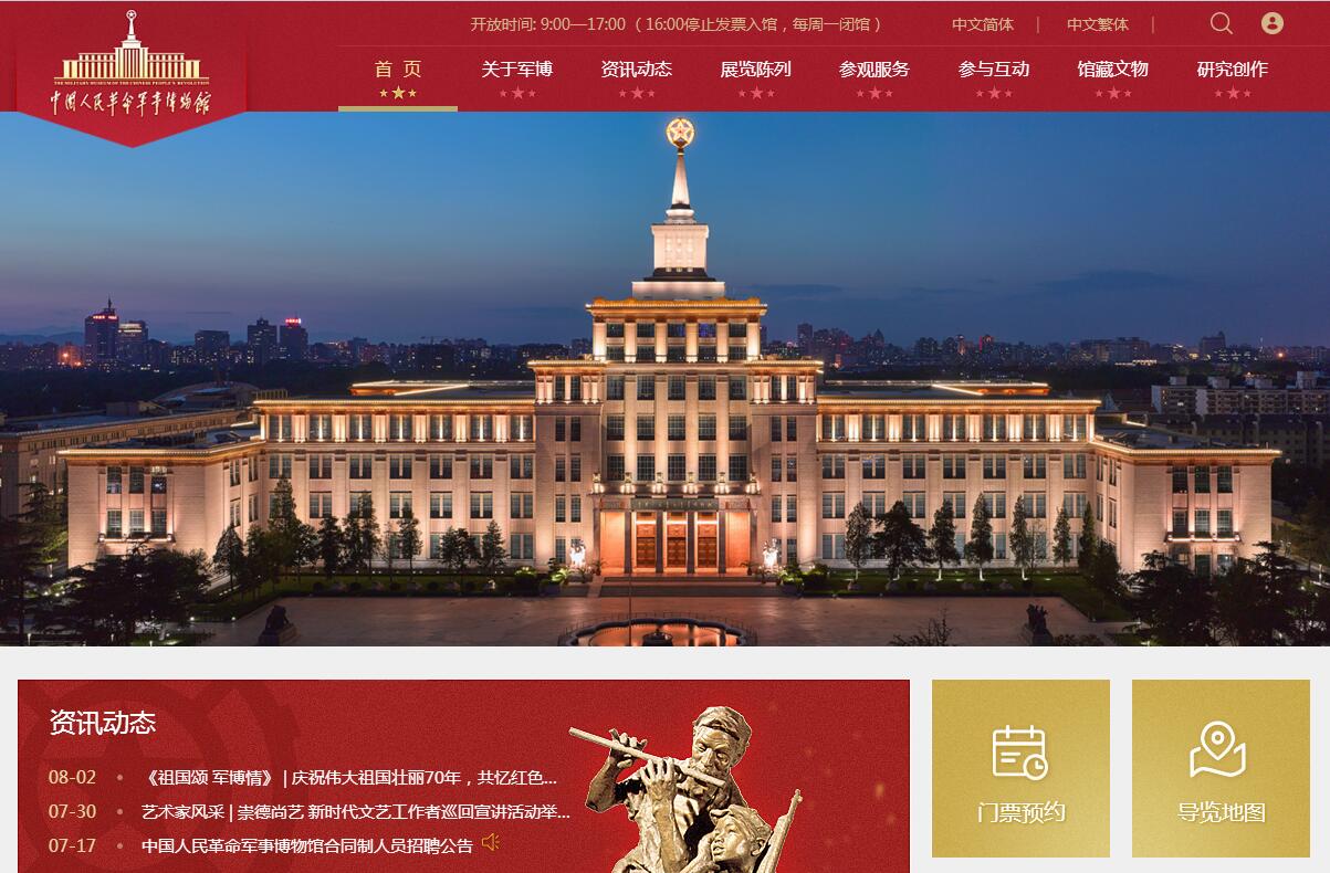 中國人民革命軍事博物館是中國第一個綜合類軍事博物館,位于北京市復(fù)興路9號。展覽大樓1958年10月興建,1959年7月建成,1960年8月1日正式開放,是向國慶10周年獻(xiàn)禮的首都十大建筑之一。2012年9月,軍事博物館對展覽大樓加固改造,2017年7月竣工。加固改造后,軍事博物館展覽大樓建筑面積15.9萬平方米,陳列面積近6萬平方米。主樓建筑高94.7米,南北兩側(cè)各4層,樓頂裝有直徑6米的巨大的中國人民解放軍軍徽。全館有43個陳列廳(區(qū))。軍事博物館主要從事收藏、研究、陳列反映中國共產(chǎn)黨領(lǐng)導(dǎo)的軍事斗爭歷程和人民軍隊(duì)建設(shè)成就的文物、實(shí)物、文獻(xiàn)、資料,以及反映中華民族五千年軍事歷史和世界軍事史的文物、實(shí)物、文獻(xiàn)、資料。圍繞黨和國家及軍隊(duì)的中心工作,舉辦各種專題性、時事性、紀(jì)念性展覽。接待國內(nèi)外來賓和觀眾的參觀訪問。組織開展相關(guān)的學(xué)術(shù)研究和藝術(shù)創(chuàng)作。組織開展與國內(nèi)外博物館之間的業(yè)務(wù)交流。下轄綜合辦公室、編輯研究室、宣傳教育室、設(shè)計美術(shù)室、藏品征集保管室、文物保護(hù)室、信息資料室、安全保衛(wèi)室、通州分館、懷柔分館等10個中層單位。同時還設(shè)有學(xué)術(shù)委員會、藝術(shù)委員會、文物鑒定委員會。軍事博物館館藏文物以反映中國人民解放軍軍事史、中國古近代軍事史和世界軍事史為主。館藏特色文物為武器、軍服、證章和軍事題材藝術(shù)品等?,F(xiàn)有文物18萬余件套,一級品1793件套。軍事博物館以全軍各大單位調(diào)撥、個人捐獻(xiàn)和轉(zhuǎn)讓等方式,對我軍歷史文物和中國近現(xiàn)代文物進(jìn)行系統(tǒng)征集,奠定軍事特色鮮明的紅色大館的文物優(yōu)勢地位。近年來,采取捐購結(jié)合的方式,加大對世界軍品的征集,征集到極具收藏和研究價值的珍貴文物近2萬件(套)。軍事博物館文物庫房,建筑面積約1.8萬平米,下設(shè)藏品庫、珍品陳列室、總賬室、攝影室、3D數(shù)據(jù)采集室、修復(fù)室、武器保養(yǎng)車間等功能區(qū),配備恒溫恒濕系統(tǒng)、環(huán)境監(jiān)測系統(tǒng)、氣體滅火系統(tǒng)、信息化管理系統(tǒng)、通訊系統(tǒng)、安防系統(tǒng),成為集文物管理、陳列展示、文物保護(hù)、文物信息采集和安全防范功能于一體的現(xiàn)代化、信息化、專業(yè)化藏品庫房。軍事博物館門戶網(wǎng)站于2010年8月1日正式上線,建立了軍事博物館數(shù)字博物館。網(wǎng)站設(shè)關(guān)于軍博、資訊動態(tài)、展覽陳列、參觀服務(wù)、參與互動、館藏文物、研究創(chuàng)作共7個一級欄目,對外發(fā)布軍博資訊、展覽預(yù)告、參觀指南、文物征集、志愿者招募等信息,提供門票預(yù)約、網(wǎng)友留言、調(diào)查問卷等功能。為擴(kuò)大展覽影響力和方便觀眾遠(yuǎn)程參觀,陸續(xù)推出中國共產(chǎn)黨領(lǐng)導(dǎo)的革命戰(zhàn)爭陳列、新中國國防和軍隊(duì)建設(shè)陳列、兵器陳列、中國歷代軍事陳列、軍事科技陳列、紅色記憶——館藏革命軍事藝術(shù)作品陳列等6個基本陳列網(wǎng)上展館,以及“銘記光輝歷史 開創(chuàng)強(qiáng)軍偉業(yè)——慶祝中國人民解放軍建軍90周年主題展覽”網(wǎng)上展館。此外,為適應(yīng)移動互聯(lián)網(wǎng)的發(fā)展形勢,先后建立和開通了軍博官方微博和微信公眾號。2017年,以展覽大樓加固改造工程為契機(jī),軍事博物館信息化建設(shè)全面展開。利用移動互聯(lián)網(wǎng)、物聯(lián)網(wǎng)和大數(shù)據(jù)等先進(jìn)技術(shù),根據(jù)國家文物局智慧博物館參考模型和技術(shù)標(biāo)準(zhǔn),建立了“一個中心、五大平臺”的信息化體系架構(gòu),即以云計算為中心、構(gòu)建傳播平臺、服務(wù)平臺、研教平臺、管理平臺和運(yùn)行平臺。開發(fā)門戶網(wǎng)站、APP客戶端、微信公眾號、虛擬博物館、票務(wù)管理、公共信息導(dǎo)覽、智能講解等10套應(yīng)用信息系統(tǒng)。在數(shù)字化基礎(chǔ)上增加智能感知、定位和互動功能,實(shí)現(xiàn)線上線下信息融合,通過大數(shù)據(jù)分析、信息推送等手段,為觀眾提供更精細(xì)化和智能化的服務(wù)。自1985年起,軍事博物館編輯出版月刊《軍事史林》。期刊主要從軍事歷史、武器裝備、軍事藝術(shù)等全面反映中外軍事發(fā)展歷程綜合性知識。