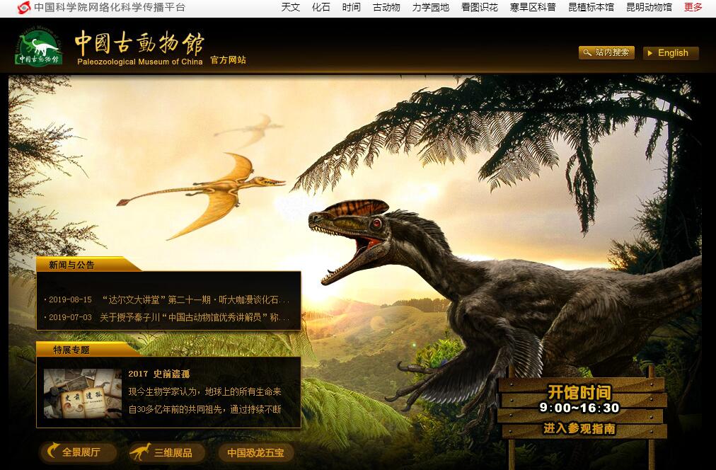 中國古動物館(英文簡稱PMC)是中國科學(xué)院古脊椎動物與古人類研究所創(chuàng)建的,中國第一家以古生物化石為載體,系統(tǒng)普及古生物學(xué)、古生態(tài)學(xué)、古人類學(xué)及進(jìn)化論知識的國家級自然科學(xué)類專題博物館,也是目前亞洲最大的古動物博物館。它同時(shí)也是全國青少年科技教育基地、北京市青少年教育基地、中國古生物學(xué)會科普教育基地和中央國家機(jī)關(guān)思想教育基地。1995年12月,中國古動物館正式對公眾開放。按照生物的演化序列,中國古動物館分為兩館(古脊椎動物館和樹華古人類館)、四個(gè)展廳(古魚形動物和古兩棲動物展廳、古爬行動物和古鳥類展廳、古哺乳動物展廳、古人類與舊石器展廳),并包括東廳、貴賓廳等特展廳。依托研究所近百年收藏的20余萬件標(biāo)本,展出了從中精選的有代表性的藏品近千件。展品之精美、種類之齊全,堪稱亞洲第一、中國之最。這里陳列著自5億多年前的寒武紀(jì)至距今1萬年前的地層中產(chǎn)出的史前各門類古生物化石和舊石器標(biāo)本及模型,包括無頜類和有頜類魚形動物、兩棲動物、爬行動物、鳥類、哺乳動物和古人類化石及舊石器等,全面展現(xiàn)了史前動物和古人類的自然遺存及其生命演化的宏偉歷程。中國古動物館展出的珍貴展品中包括來自非洲的特殊禮物 “活化石”拉蒂邁魚、亞洲最大的恐龍馬門溪龍、被稱為“中國第一龍”的許氏祿豐龍、被編入我國小學(xué)課本的古動物黃河象的骨架,以及神秘的“北京猿人”頭蓋骨丟失前復(fù)制的仿真模型等。最近館內(nèi)又增添了長有羽毛的恐龍、世界最早具有角質(zhì)喙的古鳥類、世界首枚翼龍胚胎、中生代能吃恐龍的哺乳動物等在世界上引起轟動的珍稀標(biāo)本。通過我們豐富的展品和故事,以及集科學(xué)性、互動性和娛樂性為一體的多種多媒體電子游戲設(shè)備,觀眾可以在游樂的同時(shí)全面、系統(tǒng)地了解史前生命演化的知識。中國古動物館創(chuàng)辦的“小達(dá)爾文俱樂部”,定期組織專家科普講座、野外考察、化石發(fā)掘、篩選和修理,以及模型制作等科普教學(xué)活動,是中小學(xué)生古生物愛好者的課外學(xué)堂。中國古動物館熱情歡迎您的參觀!