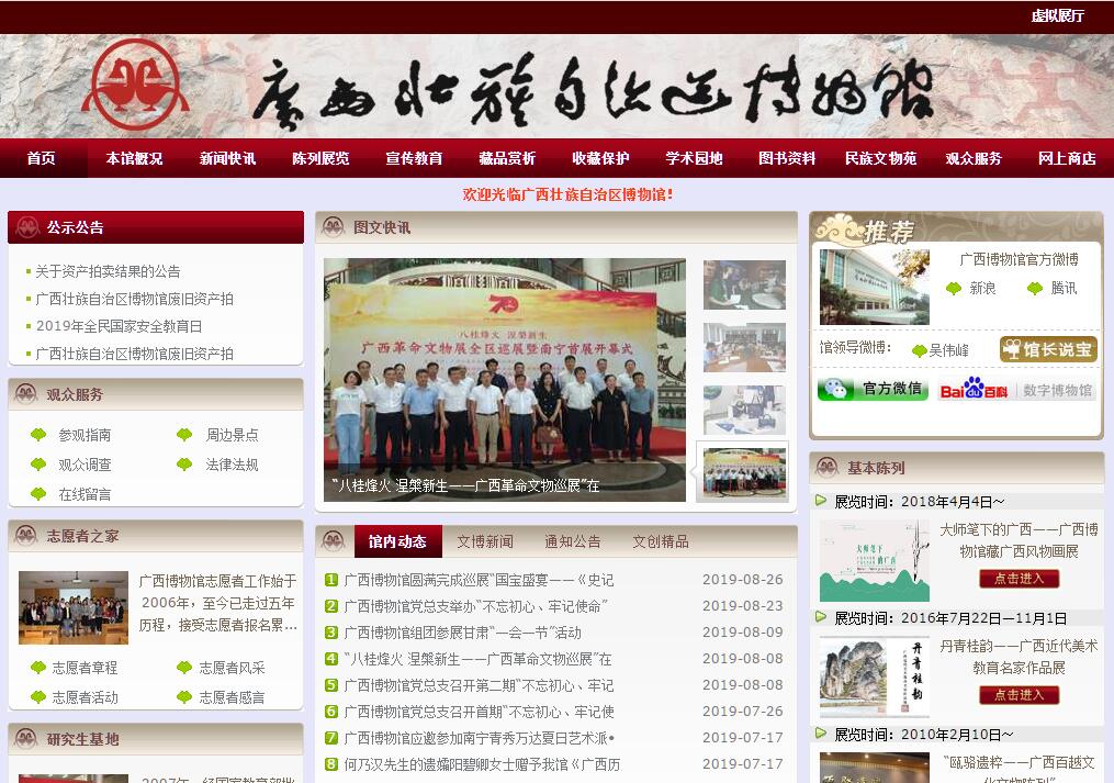 廣西壯族自治區(qū)博物館(以下簡稱廣西博物館)是省(自治區(qū))級綜合性歷史、藝術類博物館,也是全國首批國家一級博物館。館藏文物(含古籍)7萬多件(套),時間跨度長達80多萬年。廣西博物館地處南寧市政治、文化、商業(yè)中心,占地面積4萬多平方米。陳列大樓之外還建有頗具民族特色的文物苑,是國內(nèi)最早開創(chuàng) “館苑結合”、“動靜相輔”模式的博物館。廣西博物館是展示和傳承八桂歷史文明、弘揚優(yōu)秀傳統(tǒng)文化的藝術殿堂,已構建了基本陳列、特別展覽、合作展覽、輸出展覽和引進展覽交相輝映的陳列展覽體系,且不斷探索改革、推陳出新,全力講好廣西故事。西博物館近年來不斷探索多元化宣傳教育模式,開展了一系列獨具亮點的社會教育活動,充分發(fā)揮博物館的公共文化服務作用。廣西博物館緊緊圍繞“以人為本”中心思想,通過免費講解、主題導覽等形式,使展覽不斷貼近群眾。在館外,廣西博物館文物宣傳小分隊開展流動展覽進社區(qū)、進校園、進軍營等活動,與社會各界廣泛開展文化共建,設立文化服務點,讓更多的公眾了解廣西歷史文化,使博物館融入到廣大公眾的日常生活中。為了吸引更多的未成年人走進博物館,廣西博物館以愛國主義教育為主線,把博物館社會教育開展得有聲有色。根據(jù)未成年人的特點,廣西博物館舉辦通俗易懂的專題講座,制作了符合孩子特點的教育宣傳折頁,開展具有特色的教育互動活動,如“中華傳統(tǒng)節(jié)日主題活動”中的特色手工活動、“暑期歡樂營”中的博物館文化體驗課堂等。據(jù)不完全統(tǒng)計,廣西博物館每年開展公眾活動400余次。隨著社會影響日益擴大,廣西博物館的活動形式也在不斷推陳出新,活動品質(zhì)不斷提升,為觀眾打造了高品質(zhì)的文化盛宴。2014年新春,廣西博物館的“漢服體驗秀”活動在中央電視臺《新聞聯(lián)播》節(jié)目中報道;“古風國韻音樂會”、傳統(tǒng)手工藝課堂等活動也在觀眾中引起了巨大共鳴,反響熱烈。廣西博物館注重為特殊群體組織專題活動,通過愛心展覽、愛心課堂、愛心圖書角、愛心體驗以及愛心幫扶等形式,積極關愛孤兒、清潔工、留守兒童、聾啞兒童、貧困學生、農(nóng)民工子女等。此外,廣西博物館還積極創(chuàng)新志愿服務的工作機制,擴大志愿者隊伍規(guī)模,拓展志愿服務領域,志愿者工作蓬勃發(fā)展。為擴大宣傳力度,延伸為民服務功能,廣西博物館不斷嘗試,將新媒體技術運用到宣傳推廣上。建立新浪、騰迅、人民網(wǎng)三個官方微博;開通廣西博物館官方微信平臺;采用網(wǎng)絡直播的形式,對現(xiàn)場活動進行了實時報道;聯(lián)合“新浪廣西”在微博上開展微直播和微訪談,在官方微博上對活動進行直播報道;針對大型展覽,開發(fā)各種APP應用程序等。通過不懈努力,廣西博物館人性化、個性化的服務,使得博物館文化在公眾面前變得越來越觸手可及。豐富多彩的社會教育活動,使博物館“活”了起來,讓更多的人走進博物館并愛上博物館。為有效服務國家“一帶一路”戰(zhàn)略的實施和中南西南戰(zhàn)略支點的打造,加快廣西文化大發(fā)展大繁榮和民族文化強區(qū)建設,提升廣西對外開放和現(xiàn)代公共服務水平,廣西博物館近幾年重點籌備改擴建項目。改擴建后的廣西博物館將繼續(xù)集收藏、保護、研究、展示、教育于一體,依托中國—東盟自由貿(mào)易區(qū)的中心區(qū)位優(yōu)勢,著力打造成為國際文化交流平臺,國家重要文化陣地,廣西首府文化建筑的新地標,南寧特色文化旅游的新景點。場館建設依然沿用“館苑結合”、“動靜相輔”的模式,館內(nèi)可游可居、可玩可歇、可吃可購、可交流可學習,成為更好地服務社會、服務大眾的公共文化服務中心。