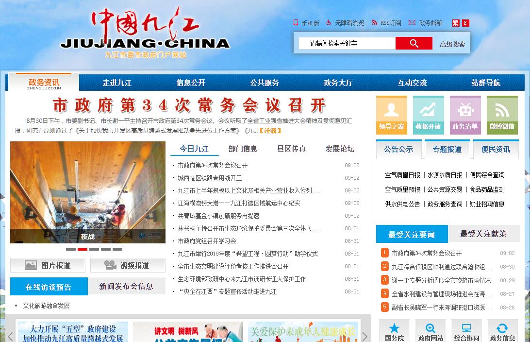 九江,簡稱 “潯”,古稱潯陽、柴桑、江州,為江西省地級市,是一座有著2200多年歷史的江南文化名城,歷代為都、郡、州、府治地。九江位于江西省最北部,長江中下游南岸,鄱陽湖北畔,贛、鄂、皖、湘四省交界處,長江、鄱陽湖、京九鐵路的三大交叉點,是東部沿海與中部內(nèi)陸的過渡地帶,也是江南的三大茶市與四大米市,號稱“三江之口、七省通衢”與“天下眉目之地”,有“江西北大門”之稱。九江是江西省區(qū)域中心城市之一、昌九一體化雙核城市、環(huán)鄱陽湖城市群副中心城市、長江中游區(qū)域中心港口城市、贛鄂皖湘區(qū)域性現(xiàn)代化中心城市。九江是中國首批5個沿江對外開放城市之一、江西唯一的國際貿(mào)易口岸城市,九江港是長江流域十大港口之一,國家一類口岸。九江全境東西長270公里,南北寬140公里,總面積19078平方公里,占江西省總面積的11.3%,2017年年末,全市總?cè)丝跒?87.33萬人。轄潯陽區(qū)、濂溪區(qū)、柴桑區(qū)、武寧縣、修水縣、永修縣、德安縣、都昌縣、湖口縣、彭澤縣、瑞昌市,廬山市、九江經(jīng)濟(jì)技術(shù)開發(fā)區(qū)、共青城市、廬山風(fēng)景名勝區(qū)管理局、廬山西海風(fēng)景名勝區(qū)和八里湖新區(qū)。九江人文深厚、風(fēng)景秀麗,素有“江派潯陽郡、分明似畫圖”之美稱,有中國第一大淡水湖“鄱陽湖”;世界文化景觀遺產(chǎn)、中華十大名山“廬山”;佛教凈土宗發(fā)源地“東林寺”;中國四大書院之首“白鹿洞書院”等風(fēng)景名勝古跡。九江曾獲“ 中國優(yōu)秀旅游城市、中國十大魅力城市、中國十佳宜居城市、國家園林城市、國家森林城市、全國雙擁模范城市、全國無障礙建設(shè)先進(jìn)城市、最具國際影響力旅游城市” 等稱號。2018年,九江全市實現(xiàn)生產(chǎn)總值2700.19億元,按可比價格計算,增長11.87%;增速全省第1位,總量排名全省第3位;完成財政總收入461.29億元,增長11.1%;一般公共財政預(yù)算收入262.54億元,增長0.8%;規(guī)模以上工業(yè)增加值1204.93億元,增長9.2%;固定資產(chǎn)投資2730.96億元、增長12.5%,其中工業(yè)固定資產(chǎn)投資2134.16億元、增長14.5%;社會消費品零售總額739.21億元,增長12.6%;實際利用外資19.84億美元,同比增長10.1%;出口總值289.1億元,增長2.3%;金融機(jī)構(gòu)人民幣存款余額2916.18億元,增長12.4%;金融機(jī)構(gòu)人民幣貸款余額2073.51億元,增長18.2%;城鎮(zhèn)居民人均可支配收入34592元,增長8.6%;農(nóng)村居民人均可支配收入23303元,增長9.4%。2019年7月5日,中華人民共和國生態(tài)環(huán)境部公布了2019年統(tǒng)籌強(qiáng)化監(jiān)督(第一階段)黑臭水體專項排查情況,九江被列入“黑臭水體消除比例低于80%的城市名單”,消除比例為0%。2019年7月,被評為國家知識產(chǎn)權(quán)試點城市。