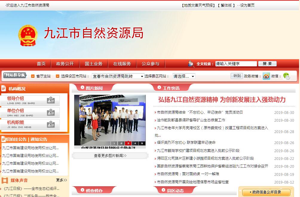 根據(jù)《省委辦公廳、省政府辦公廳關于印發(fā)〈九江市市縣機構改革實施方案〉的通知》(贛廳字〔2018〕90號)、《中共九江市委辦公廳、九江市人民政府辦公廳關于印發(fā)〈九江市機構改革實施方案〉的通知》(九辦發(fā)〔2019〕1號)和《市委辦公室、市政府辦公室關于印發(fā)〈市自然資源局職能配置、內設機構和人員編制規(guī)定〉的通知》(九辦字〔2019〕60號)規(guī)定,九江市自然資源局是市政府工作部門,為正處級。其主要職責是:(一)履行全民所有土地、礦產(chǎn)、森林、草原(草地)、濕地、水等自然資源資產(chǎn)所有者職責和所有國土空間用途管制職責。貫徹執(zhí)行國家自然資源和國土空間規(guī)劃及測繪等法律法規(guī),擬訂自然資源和國土空間規(guī)劃及測繪等地方性法規(guī)、規(guī)章草案,制定相關管理政策并監(jiān)督執(zhí)行。(二)負責自然資源調查監(jiān)測評價。制定全市自然資源調查監(jiān)測評價的指標體系和統(tǒng)計標準,建立統(tǒng)一規(guī)范的自然資源調查監(jiān)測評價制度。實施自然資源基礎調查、專項調查和監(jiān)測。負責自然資源調查監(jiān)測評價成果的監(jiān)督管理和信息發(fā)布。指導全市自然資源調查監(jiān)測評價工作。(三)負責自然資源統(tǒng)一確權登記工作。制定各類自然資源和不動產(chǎn)統(tǒng)一確權登記、權籍調查、不動產(chǎn)測繪、爭議調處、成果應用的制度、標準、規(guī)范。建立健全全市自然資源和不動產(chǎn)登記信息管理基礎平臺。負責自然資源和不動產(chǎn)登記行政行為復議和資料收集、整理、共享、匯交管理等。指導監(jiān)督全市自然資源和不動產(chǎn)確權登記工作。(四)負責自然資源資產(chǎn)有償使用工作。貫徹執(zhí)行全民所有自然資源資產(chǎn)統(tǒng)計制度,負責全民所有自然資源資產(chǎn)核算。編制全民所有自然資源資產(chǎn)負債表,擬訂考核標準。制定全民所有自然資源資產(chǎn)劃撥、出讓、租賃、作價出資和土地儲備政策,合理配置全民所有自然資源資產(chǎn)。負責自然資源資產(chǎn)價值評估管理,依法收繳相關資產(chǎn)收益。(五)負責自然資源的合理開發(fā)利用。組織擬訂自然資源發(fā)展規(guī)劃,制定自然資源開發(fā)利用標準并組織實施,建立政府公示自然資源價格體系,組織開展自然資源分等定級價格評估,開展自然資源利用評價考核,指導節(jié)約集約利用。負責自然資源市場監(jiān)管。組織研究自然資源管理涉及宏觀調控、區(qū)域協(xié)調和城鄉(xiāng)統(tǒng)籌的政策措施。(六)負責建立空間規(guī)劃體系并監(jiān)督實施。推進落實主體功能區(qū)戰(zhàn)略和制度,組織編制并監(jiān)督實施國土空間規(guī)劃、相關專項規(guī)劃、詳細規(guī)劃和城市設計。開展資源環(huán)境承載力和國土空間開發(fā)適宜性評價,建立國土空間規(guī)劃實施監(jiān)測、評估和預警體系。組織劃定生態(tài)保護紅線、永久基本農(nóng)田、城鎮(zhèn)開發(fā)邊界等控制線,構建節(jié)約資源和保護環(huán)境的生產(chǎn)、生活、生態(tài)空間布局。建立健全國土空間用途管制制度,研究擬訂城鄉(xiāng)規(guī)劃政策并監(jiān)督實施。組織擬訂并實施土地等自然資源年度利用計劃。負責九江市中心城區(qū)城鄉(xiāng)規(guī)劃實施統(tǒng)一管理,依法對中心城區(qū)各類建設項目核發(fā)建設項目選址意見書、建設用地規(guī)劃許可證、建設工程規(guī)劃許可證和鄉(xiāng)村建設規(guī)劃許可證,負責已批建設項目的批后管理和規(guī)劃條件核實工作。負責指導監(jiān)督基層規(guī)劃編制管理。負責土地等國土空間用途轉用工作。負責土地征收征用管理。(七)負責統(tǒng)籌國土空間生態(tài)修復。牽頭組織編制國土空間生態(tài)修復規(guī)劃并實施有關生態(tài)修復重大工程。負責組織實施和監(jiān)督指導國土空間綜合整治、土地整理復墾、礦山地質環(huán)境恢復治理、礦業(yè)遺跡保護等工作。牽頭建立和實施生態(tài)保護補償?shù)戎贫龋贫ê侠砝蒙鐣Y金進行生態(tài)修復的政策措施,提出重大備選項目。(八)負責組織實施最嚴格的耕地保護制度。牽頭擬訂并實施耕地保護政策,負責耕地數(shù)量、質量、生態(tài)保護。組織實施耕地保護責任目標考核和永久基本農(nóng)田特殊保護。完善耕地占補平衡制度,監(jiān)督占用耕地補償制度執(zhí)行情況。(九)負責管理地質勘查行業(yè)和全市地質工作。編制地質勘查規(guī)劃并監(jiān)督檢查執(zhí)行情況,配合實施省重大地質調查、礦產(chǎn)勘查專項。負責地下水地質環(huán)境、區(qū)域地下水水質監(jiān)測,監(jiān)督管理地下水過量開采、疏干及引發(fā)的地面沉降等地質問題。負責古生物化石等地質遺跡的監(jiān)督管理。(十)負責礦產(chǎn)資源管理工作。負責權限內的礦產(chǎn)資源儲量管理及壓覆礦產(chǎn)資源審批。負責礦業(yè)權管理。會同有關部門承擔保護性開采的特定礦種、優(yōu)勢礦產(chǎn)的調控及相關管理工作。監(jiān)督指導礦產(chǎn)資源合理利用和保護。(十一)負責測繪地理信息管理工作。負責基礎測繪和測繪行業(yè)管理。負責測繪資質資格與信用管理,監(jiān)督管理全市地理信息安全和市場秩序。負責地理信息公