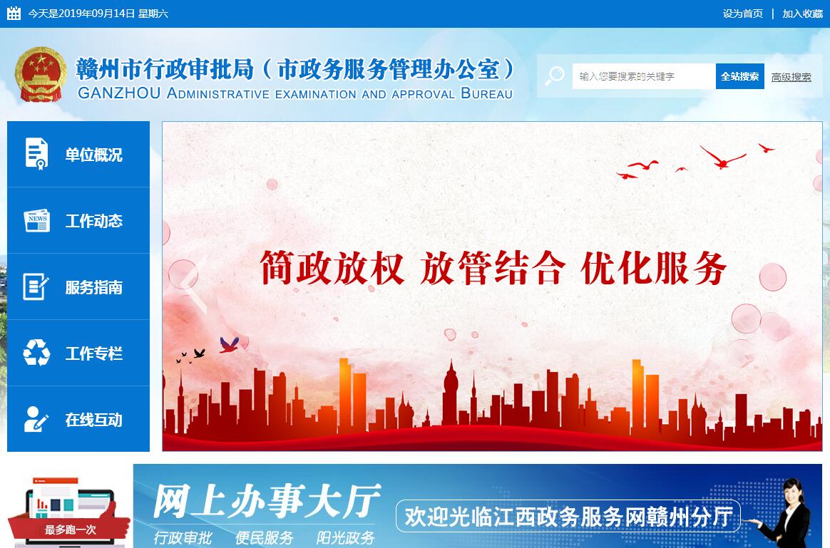 贛州市行政審批局(市政務(wù)服務(wù)管理辦公室)2017年12月28日正式揭牌運(yùn)行,前身是贛州市行政服務(wù)中心。發(fā)展至今,始終堅(jiān)持貫徹落實(shí)中央和省、市關(guān)于加強(qiáng)和改進(jìn)政務(wù)服務(wù)工作的決策部署,堅(jiān)持需求和問題導(dǎo)向,以“放管服”改革為主線,以“集中、精簡、高效、便捷”為目標(biāo),不斷改進(jìn)工作作風(fēng)、提高工作效率,大力推進(jìn)政務(wù)服務(wù)標(biāo)準(zhǔn)化和“互聯(lián)網(wǎng)+政務(wù)服務(wù)”,著力夯實(shí)政務(wù)服務(wù)體系,優(yōu)化政務(wù)服務(wù)流程,為企業(yè)和群眾提供優(yōu)質(zhì)、高效的政務(wù)服務(wù)。贛州市行政審批局(市政務(wù)服務(wù)管理辦公室)位于贛州市新區(qū)長征大道與贊賢路交匯路口。大樓占地面積7.4畝,總建筑面積12000平方米,共8層。樓內(nèi)設(shè)有行政審批服務(wù)大廳、并聯(lián)審批會(huì)議室、會(huì)議洽談室、開標(biāo)室、評(píng)標(biāo)室、詢標(biāo)室、交易大廳,安裝了消防、空調(diào)、電梯、音響、監(jiān)控等設(shè)備,配置了電腦、指紋打卡機(jī)、電子顯示屏、電子觸摸屏、中心局域網(wǎng)和中心網(wǎng)站等電子政務(wù)設(shè)施,設(shè)立了樓層示意圖和咨詢導(dǎo)辦臺(tái)。大樓整體布局較為科學(xué)合理,配套設(shè)施比較齊全,服務(wù)功能較為完善,是一個(gè)集“行政審批服務(wù)、公共資源交易、房地產(chǎn)交易和不動(dòng)產(chǎn)登記”于一體的政府綜合性服務(wù)平臺(tái)。市建設(shè)工程招標(biāo)投標(biāo)辦公室、市國土局不動(dòng)產(chǎn)登記中心、市房管局房地產(chǎn)交易管理中心整體進(jìn)駐樓內(nèi)辦公。贛州市行政審批局(市政務(wù)服務(wù)管理辦公室)在贛州市行政服務(wù)中心管理委員會(huì)上組建,加掛贛州市政務(wù)服務(wù)管理辦公室牌子,實(shí)行一個(gè)機(jī)構(gòu)兩個(gè)牌子,為市政府工作部門,正處級(jí)。內(nèi)設(shè)辦公室(檔案科)、政務(wù)服務(wù)管理科、政務(wù)服務(wù)監(jiān)督科、行政審批制度改革科、投資項(xiàng)目審批科、社會(huì)事務(wù)審批一科、社會(huì)事務(wù)審批二科、市場(chǎng)服務(wù)審批一科、市場(chǎng)服務(wù)審批二科、農(nóng)業(yè)事務(wù)審批科10個(gè)職能科室和機(jī)關(guān)黨總支,人員編制53名。其主要職責(zé)是:(一)貫徹執(zhí)行國家、省、市有關(guān)行政審批制度改革、政務(wù)服務(wù)、政府公共服務(wù)熱線等方面的方針政策、法律法規(guī)和決策部署,制定行政審批局各項(xiàng)規(guī)章制度和管理辦法,并組織實(shí)施。(二)研究探索規(guī)范政務(wù)服務(wù)行為、優(yōu)化政務(wù)服務(wù)環(huán)境等工作,提出解決意見和建議,為市委、市政府科學(xué)決策提供參考。(三)在市審改辦指導(dǎo)下,承接國務(wù)院和省人民政府下放的行政審批事項(xiàng),落實(shí)國務(wù)院和省、市人民政府取消或暫停實(shí)施的行政審批事項(xiàng),下放市人民政府公布的下放事項(xiàng)。(四)負(fù)責(zé)承擔(dān)劃轉(zhuǎn)行政審批事項(xiàng)的辦理及相關(guān)聯(lián)的行政事業(yè)性收費(fèi),并對(duì)審批行為承擔(dān)相應(yīng)的法律責(zé)任;負(fù)責(zé)承擔(dān)相關(guān)部門單位委托公共服務(wù)事項(xiàng)的辦理。(五)負(fù)責(zé)監(jiān)督和指導(dǎo)其他市直部門單位保留的行政審批事項(xiàng)及垂直管理部門單位行政審批事項(xiàng)的辦理。(六)負(fù)責(zé)組織、指導(dǎo)、協(xié)調(diào)、督促全市政務(wù)服務(wù)體系建設(shè)。(七)負(fù)責(zé)組織、協(xié)調(diào)、培訓(xùn)、監(jiān)督、考核、管理行政審批局及進(jìn)駐中心的部門單位依法、高效辦理行政審批、公共服務(wù)事項(xiàng)。(八)負(fù)責(zé)指導(dǎo)、協(xié)調(diào)、監(jiān)督、考核市直及垂直管理部門單位設(shè)立的專業(yè)辦事大廳及分中心的工作。(九)負(fù)責(zé)指導(dǎo)縣(區(qū))行政服務(wù)中心管委會(huì)及瑞金市行政審批局(行政服務(wù)中心)工作。(十)負(fù)責(zé)受理、督辦全市政務(wù)服務(wù)投訴,負(fù)責(zé)12345政府服務(wù)熱線的日常管理工作,負(fù)責(zé)熱線平臺(tái)管理事項(xiàng)的綜合協(xié)調(diào)、分辦、督辦、考核工作。(十一)負(fù)責(zé)全市政務(wù)服務(wù)系統(tǒng)網(wǎng)絡(luò)信息化建設(shè)及“互聯(lián)網(wǎng)+政務(wù)服務(wù)”的規(guī)劃設(shè)計(jì)和建設(shè)維護(hù)。(十二)負(fù)責(zé)中介服務(wù)超市的日常運(yùn)行和管理。(十三)承辦市政府交辦的其他事項(xiàng)。