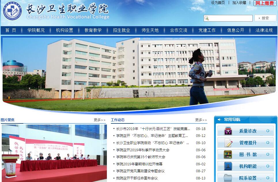 長沙衛(wèi)生職業(yè)學院是一所由長沙市人民政府舉辦的全日制公辦專科層次的普通高等學校,其前身是創(chuàng)辦于1958年的國家級重點中專學校—長沙市衛(wèi)生學校。2011年3月湖南省人民政府批準同意升格為長沙衛(wèi)生職業(yè)學院,并于2011年5月經(jīng)國家教育部備案。學院設有五學院兩部兩中心一所共10個教學部門和12個黨政管理機構(gòu),在校全日制學生7000人。學院自2019年9月起搬遷至新校區(qū)——長沙市湘江新區(qū)香山教育城(岳寧大道6號),占地1052畝,建筑面積26.6萬平方米(含附屬醫(yī)院),設施設備功能齊全。學院有附屬醫(yī)院、教學醫(yī)院、實習醫(yī)院、校企合作實訓基地共104個。學院是湖南省唯一一所純醫(yī)衛(wèi)類高職學院,醫(yī)學學科門類齊全,專業(yè)設置結(jié)構(gòu)合理,開設臨床醫(yī)學、口腔醫(yī)學、護理、助產(chǎn)、老年保健與管理、藥學、中藥學、藥品服務與管理、眼視光技術、口腔醫(yī)學技術、康復治療技術、醫(yī)學美容技術、言語聽覺康復技術、醫(yī)學檢驗技術等14個專業(yè)。學院已形成了健康照護、基層醫(yī)療服務、藥品技術與服務三個專業(yè)群,其中健康照護專業(yè)群、基層醫(yī)療服務專業(yè)群為湖南省高等職業(yè)教育一流特色專業(yè)群。護理和口腔醫(yī)學技術專業(yè)為中央財政支持提升專業(yè)服務產(chǎn)業(yè)發(fā)展能力的專業(yè)。護理專業(yè)被列入國家緊缺人才培養(yǎng)基地和全國職業(yè)院校健康服務類示范專業(yè)點。口腔醫(yī)學專業(yè)入選湖南省教學資源庫建設項目。口腔醫(yī)學技術專業(yè)是湖南省高職校企合作生產(chǎn)性實習實訓基地項目。學院建有“國家職業(yè)技能鑒定所”,依托國家衛(wèi)計委在我院設立的衛(wèi)生行業(yè)特有工種職業(yè)技能鑒定站、國家衛(wèi)計委職業(yè)技能鑒定試題開發(fā)基地、國家中醫(yī)藥管理局行業(yè)特有職業(yè)技能鑒定基地,開展多個工種的職業(yè)技能培訓與鑒定工作,服務區(qū)域經(jīng)濟社會發(fā)展能力顯著提升。近年來,學院加大教育教學改革力度,對接健康服務業(yè)和養(yǎng)老產(chǎn)業(yè),形成了“校企(醫(yī)院)合作、工學結(jié)合、雙證融通”的人才培養(yǎng)模式,強調(diào)技能培養(yǎng)與就業(yè)崗位需要相結(jié)合,努力培養(yǎng)高素質(zhì)醫(yī)、護、藥、技技術技能型人才,逐步實現(xiàn)了教育觀念、辦學理念和工作機制的轉(zhuǎn)變,確保了人才培養(yǎng)質(zhì)量,在全省及全國各項學生競賽中取得了較好的成績。涉外護理專業(yè)學生連續(xù)6年參加全國職業(yè)學院英語比賽,均獲一等獎;護理專業(yè)學生參加全省護理專業(yè)操作技能競賽獲多個一等獎,并代表湖南參加全國競賽,獲多個一、二、三等獎;臨床醫(yī)學專業(yè)學生參加2017年全國首屆高等職業(yè)院校臨床專業(yè)技能大賽榮獲團體一等獎;參加2018年全國職業(yè)院校臨床醫(yī)學專業(yè)技能大賽的三名學生均獲一等獎;護理、助產(chǎn)專業(yè)學生參加護士執(zhí)業(yè)資格考試,大專生合格率100%,居全國領先水平。近兩年在全國護理專業(yè)教師教學能力大賽中獲團體一等獎、二等獎,參賽教師獲多個一、二等獎。學院積極推進職業(yè)教育境外交流,與日本國際看護師育成會合作辦學,開辦護理專業(yè)日語方向班;與中德護理協(xié)會合作,開辦護理專業(yè)德語方向班;與英國伯恩維爾學院、美國加州薩克拉門托洛斯羅斯社區(qū)學院和加利福尼亞州立大學CIE學會、澳大利亞新南威爾士州教育廳簽訂了友好合作協(xié)議,開辦護理專業(yè)英語方向班;與臺灣大仁科技大學合作,互派學生交換學習。近三年來,有50多名學生到美國、英國、澳大利亞、日本、德國、臺灣等國家和地區(qū)學習和工作。學院招生就業(yè)形勢兩旺,高考錄取分數(shù)線居全省同類學院前列,錄取率100%,畢業(yè)生雙證書獲得率在95%以上,畢業(yè)生就業(yè)率保持在95%以上,專業(yè)技能抽查合格率在全省高職院校中穩(wěn)居第一方陣。與長沙縣、寧鄉(xiāng)市、瀏陽市合作實施全科醫(yī)生定向培養(yǎng),開辦定向培養(yǎng)基層全科醫(yī)生班,畢業(yè)生參加全省鄉(xiāng)村執(zhí)業(yè)醫(yī)師考試合格率達100%,是全省8所參與此項工作的高職院校中唯一一次性全部通過的學校。學院為湖南省首批高職院校內(nèi)部質(zhì)量保證體系建設示范單位,并于2019年4月首批通過診改復核“有效”。學校成立以來,受到了上級黨委和政府的高度重視和親切關懷,得到了社會各界的廣泛認可,獲得了眾多榮譽。學院是全國德育管理先進單位,是中國職業(yè)教育學會衛(wèi)生教育專業(yè)委員會副主任委員單位,是中國計生協(xié)會計生工作先進單位及青春健康教育示范基地;榮獲全國2018年“優(yōu)秀成人繼續(xù)教育學院”;學院是湖南省文明衛(wèi)生單位、湖南省就業(yè)指導先進單位、湖南省普通高校招生工作先進單位、湖南省文明校園、湖南省平安高校、湖南省醫(yī)學教育科技學會高職高專教育專業(yè)委員會主任單位;學院是長沙市文明標兵單位、長沙市反腐倡廉建設先進單位、長沙市畢業(yè)生就業(yè)工作先進單位(連續(xù)八年)、長沙市綜合治理工作優(yōu)秀單位。