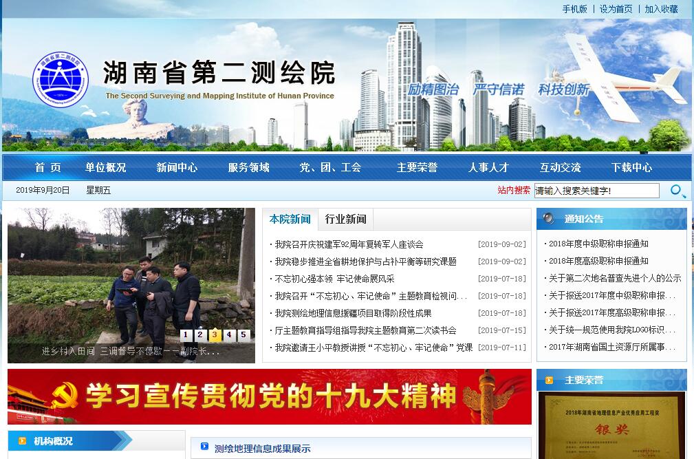 湖南省第二測繪院成立于1974年,是直屬于湖南省自然資源廳為全省自然資源管理和經(jīng)濟社會發(fā)展提供技術(shù)支撐和技術(shù)服務(wù)的公益二類事業(yè)單位,是我省測繪地理信息行業(yè)的支柱單位之一,是全省唯一具有航空攝影甲級資質(zhì)的單位,具有甲級測繪資質(zhì)、甲級土地規(guī)劃資質(zhì)、丙級地質(zhì)災(zāi)害危險性評估資質(zhì)和丙級地質(zhì)災(zāi)害治理工程設(shè)計資質(zhì),業(yè)務(wù)范圍涵蓋了地理信息產(chǎn)業(yè)上游數(shù)據(jù)獲取、中游數(shù)據(jù)處理、下游GIS研發(fā)和數(shù)據(jù)增值應(yīng)用以及為全省自然資源管理提供技術(shù)支撐等方面。近年來,我院裝備了當(dāng)今世界最先進的航空攝影系統(tǒng)徠卡ADS100、微軟UC Eagle、徠卡DMCIII、微軟UCOPⅡ和國內(nèi)先進的無人機航攝系統(tǒng),引進了當(dāng)前世界一流的遙感影像自動化處理系統(tǒng)法國像素工廠,擁有國內(nèi)外最先進的航空影像和衛(wèi)星遙感處理軟、硬件,形成了強大的高、中、低空攝影數(shù)據(jù)獲取、后處理能力,是湖南省目前唯一同時具備大規(guī)模全野外實地測量、中低空航空攝影測量、衛(wèi)星遙感測量全方位立體快速測繪能力的測繪單位。我院現(xiàn)有在編職工197人,離退休職工127人,教授級高級工程師4人,高級工程師32人,高級會計師1人,高級經(jīng)濟師2人,工程師77人,政工師1人,經(jīng)濟師3人,會計師1人,國家注冊測繪師23人。近年來,湖南省第二測繪院緊緊圍繞“五大業(yè)務(wù)”體系,努力推動全省新型基礎(chǔ)測繪體系構(gòu)建,積極謀劃、推動航空航天遙感技術(shù)和數(shù)據(jù)應(yīng)用的發(fā)展,積極推進全省應(yīng)急測繪體系建設(shè),持續(xù)為不動產(chǎn)與自然資源調(diào)查確權(quán)登記工作做好技術(shù)服務(wù)和技術(shù)支撐,積極深化地理信息成果應(yīng)用服務(wù),為國家重大工程建設(shè)、地理國情監(jiān)測、重點基礎(chǔ)設(shè)施建設(shè)、城市規(guī)劃、水利、交通、農(nóng)業(yè)、防災(zāi)救災(zāi)等方面提供了大量測繪保障和技術(shù)服務(wù),為我省自然資源管理和經(jīng)濟社會發(fā)展作出了積極貢獻。建院至今,湖南省第二測繪院完成了國家、省級和地方各類重大工程項目10000余項,擁有14項計算機軟件著作權(quán),多個項目獲得國家和省級優(yōu)秀測繪地理信息工程獎、科技進步獎。新時代賦予新使命,新目標(biāo)開啟新征程。站在新的歷史發(fā)展起點上,湖南省第二測繪院將在省自然資源廳的堅強領(lǐng)導(dǎo)下,堅持以習(xí)近平新時代中國特色社會主義思想為指導(dǎo),認真學(xué)習(xí)貫徹習(xí)近平生態(tài)文明思想,緊緊圍繞自然資源“兩統(tǒng)一”職責(zé),不忘初心,牢記使命,精準(zhǔn)定位,認真履行新職能,在改革中謀求創(chuàng)新發(fā)展,在服務(wù)中推進事業(yè)轉(zhuǎn)型,切實擔(dān)當(dāng)起為省廳和全省自然資源管理提供技術(shù)支撐和服務(wù)保障的職能,為全省自然資源調(diào)查監(jiān)測和航空航天遙感數(shù)據(jù)統(tǒng)籌、遙感技術(shù)研究和應(yīng)用提供專業(yè)、科學(xué)、先進的技術(shù)支撐。