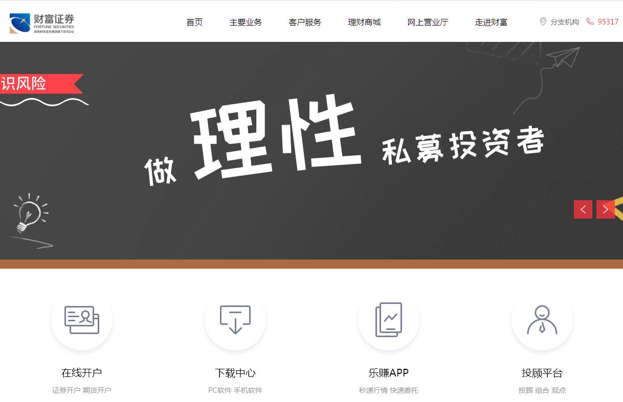 財富證券有限責(zé)任公司(簡稱“財富證券”)是湖南財信金融控股集團有限公司旗下核心企業(yè),湖南省唯一的省屬國有控股證券公司。公司成立于2002年8月,注冊資本39.65億元,控股股東為湖南財信投資控股有限責(zé)任公司,持股比例為96.49%。截至2018年12月31日,公司總資產(chǎn)規(guī)模 203.25億元 ,凈資產(chǎn)規(guī)模 60.01億元 。公司業(yè)務(wù)范圍涵蓋證券經(jīng)紀(jì)、投資銀行、資產(chǎn)管理、投資咨詢、融資融券、固定收益、證券投資、場外市場、期貨經(jīng)紀(jì)、另類投資、基金投資等;全資擁有德盛期貨有限公司、另類投資公司深圳惠和投資有限公司、私募基金公司深圳市惠和基金管理有限公司;全國設(shè)有4家分公司,75家營業(yè)部;現(xiàn)有員工1800余人。公司依托控股股東牌照齊全、實力雄厚的金融控股平臺,在債券承銷、互聯(lián)網(wǎng)金融、固定收益投資等領(lǐng)域形成并保持了行業(yè)競爭優(yōu)勢,可以全方位滿足企業(yè)與個人投資者多元化金融服務(wù)需求。公司在國家發(fā)改委2017年度企業(yè)債券主承銷商信用評價中,排名全行業(yè)第3位,榮獲中央結(jié)算公司“2017年中債優(yōu)秀承銷機構(gòu)獎”,近年來,公司還榮獲長沙市規(guī)模效益獎,湖南省文明標(biāo)兵單位、湖南省科學(xué)技術(shù)二等獎、湖南金融創(chuàng)新力量獎,中國證券業(yè)協(xié)會優(yōu)秀課題報告,中國證券期貨業(yè)優(yōu)秀融資扶貧獎、優(yōu)秀定點扶貧獎、最佳產(chǎn)業(yè)扶貧項目獎,以及證券時報“中國區(qū)最佳債券投行”、“中國區(qū)最佳企業(yè)債承銷團隊”、“中國最具突破證券經(jīng)紀(jì)商”、“十佳銀行間債券投行”、“五星扶貧債券承銷商”等多個獎項。