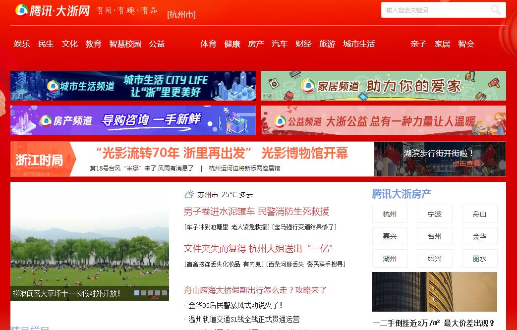 | 網(wǎng)站簡介: 大浙網(wǎng)定位為浙江城市生活門戶,把握城市脈搏,創(chuàng)造快樂生活,以杭州為核心,覆蓋整個浙江省,傳播本地資訊和文化,為浙江省互聯(lián)網(wǎng)用戶提供最本地化的新聞行業(yè)資訊和生活娛樂產(chǎn)品,打造一站式在線生活服務(wù)。 |