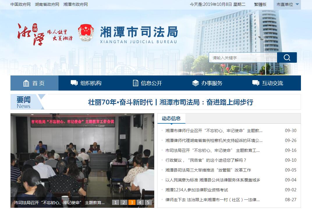 湘潭市司法局為1983年湘潭地、市司法局合并而成,屬湘潭市人民政府組成部門,當(dāng)時主管全市法學(xué)教育、法制宣傳、律師、公證、人民調(diào)解等工作。后又新增司法鑒定、司法考試、法律援助、社區(qū)矯正、安置幫教、強制隔離戒毒等工作職能。2019年市司法局與市政府法制辦職能整合,重新組建市司法局。新組建的市司法局職能概括起來講就是:“一個統(tǒng)籌、四項職能”,即統(tǒng)籌全面依法治市工作,承擔(dān)行政立法、行政執(zhí)法、刑罰執(zhí)行和公共法律服務(wù)職能。目前,局機關(guān)設(shè)有19個內(nèi)設(shè)機構(gòu)和部門。近年來,我市司法行政工作在市委、市政府的正確領(lǐng)導(dǎo)和省司法廳的精心指導(dǎo)下,全市司法行政系統(tǒng)不忘初心、牢記使命、開拓進(jìn)取,取得了可喜的成績。湘潭司法行政工作在省司法廳全面考評中名列前茅,市司法局被評為全市綜治考核先進(jìn)單位,原市政府法制辦被評為“全省政府法制工作先進(jìn)集體”“全省法治政府建設(shè)優(yōu)秀單位”等。湘潭縣司法局被評為“全國法治縣(市、區(qū))創(chuàng)建活動先進(jìn)單位”,韶山市韶山鄉(xiāng)人民調(diào)委會被評為“全國人民調(diào)解工作先進(jìn)集體”,雨湖區(qū)先鋒司法所被評為“全國先進(jìn)司法所”,雨湖區(qū)司法局、湘潭縣烏石司法所、湘鄉(xiāng)市望春門司法所被評為“全省‘三調(diào)聯(lián)動解糾紛防控風(fēng)險促發(fā)展’專項調(diào)解活動先進(jìn)集體”,岳塘區(qū)聯(lián)合人民調(diào)委會被評為“全省優(yōu)秀人民調(diào)解委員會”等。全系統(tǒng)涌現(xiàn)出“全國模范司法所長”湘潭縣云湖橋司法所長楊鐵強,“全國人民調(diào)解工作先進(jìn)個人”胡慶、肖光堯,“全市十佳政法干警”王武華、伍錦林等一大批先進(jìn)個人。隨著全面依法治國的深入推進(jìn),司法行政工作職責(zé)更加重大、任務(wù)更加艱巨,全市司法行政干警將在市委、市政府的堅強領(lǐng)導(dǎo)和省司法廳的有力指導(dǎo)下,團(tuán)結(jié)一致,振奮精神,開拓創(chuàng)新,銳意進(jìn)取,為湘潭經(jīng)濟(jì)社會的穩(wěn)定和發(fā)展做出新的更大的貢獻(xiàn)。