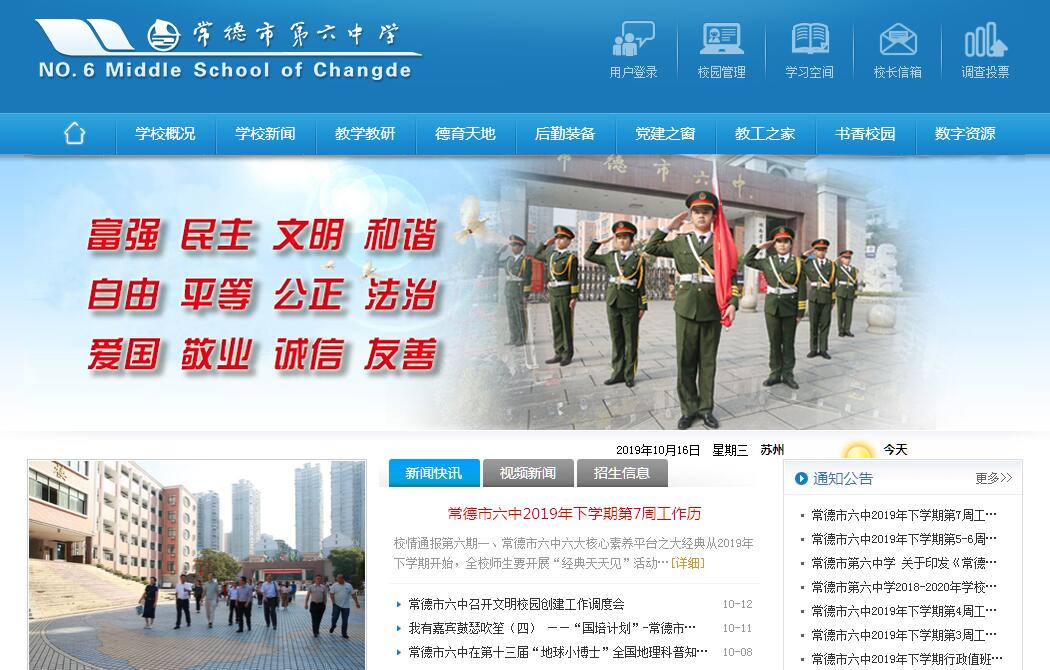 常德市六中是常德市教育局直屬的示范性完全中學(xué)。學(xué)校前身為創(chuàng)辦于1944年的湖南私立白云中學(xué)。1956年收為公辦,更名為常德市第六中學(xué)。1949年7月,劉鄧大軍進軍大西南,借白云中學(xué)為二野前線指揮所,并在白云中學(xué)成立了中共西南局,為學(xué)校歷史留下了光輝的一頁。1977年以后,學(xué)校的教育質(zhì)量在常德市名列前茅,成為常德市首批重點中學(xué),學(xué)校先后被授予湖南省重點高級中學(xué)、湖南省示范性普通高級中學(xué)、湖南省基礎(chǔ)課程改革樣板校建設(shè)學(xué)校、全國高效課堂共同體理事校、中國人民解放軍空軍飛行學(xué)員早期培訓(xùn)基地、湖南省文明美德學(xué)校、湖南省安全文明校園、常德市文明標(biāo)兵單位。學(xué)?,F(xiàn)占地面積約125000平方米。學(xué)校教學(xué)設(shè)施齊全,均屬省級一類標(biāo)準(zhǔn)。學(xué)?,F(xiàn)有54個教學(xué)班(其中高中30個,初中24個),在校學(xué)生3000余人。學(xué)?,F(xiàn)有教職工278人,其中特級教師、高級教師86人,一級教師91人,國家、省、市級骨干教師20余人、市級學(xué)科帶頭人、骨干教師12人、碩士生12人,師資力量雄厚。近年來,學(xué)校堅持“人文奠基,多元樹人”的育人理念,本著“每個孩子都有尊嚴(yán),每個孩子都可教導(dǎo),每個孩子都能成功”的指導(dǎo)思想,注重“責(zé)任、善愛、學(xué)習(xí)、表達與合作”五大素質(zhì)培養(yǎng),以“現(xiàn)代君子和現(xiàn)代淑女”形象塑造來推動校風(fēng)健康發(fā)展,在嚴(yán)抓管理、科學(xué)育人的基礎(chǔ)上培養(yǎng)“有愛心、懂感恩、會學(xué)習(xí)、有特長”的現(xiàn)代學(xué)生(初中)和“有理想、負(fù)責(zé)任、會學(xué)習(xí)、有特長”的現(xiàn)代青年(高中)。學(xué)校以“文明禮儀”、“閱讀修身”、“社會實踐”、“靜心書法”、“激情跑操”、“勵志遠足”、“溫馨班級”等具有特色的德育活動為載體,養(yǎng)成學(xué)生的良好行為習(xí)慣。學(xué)校被定為“全國養(yǎng)成教育實驗學(xué)?!?,獲常德市第五屆未成年人思想道德建設(shè)創(chuàng)新獎。學(xué)校堅持推行課堂教學(xué)改革,開展“4+X”自主開放式課堂教學(xué)模式的實踐與探索,教育教學(xué)質(zhì)量大幅度提升,被湖南省教育廳確認(rèn)為“湖南省基礎(chǔ)教育課程改革樣板建設(shè)學(xué)?!保⒊蔀椤叭珖n改名校共同體”理事校。學(xué)校成立了10多個學(xué)生社團,每年舉辦校園科技節(jié)、體育節(jié)、讀書節(jié)、社團藝術(shù)節(jié),為學(xué)生個性發(fā)展和展示才華搭建平臺,不僅促進了學(xué)生興趣愛好和個性特長發(fā)展,而且有效提高了學(xué)生的綜合素質(zhì),學(xué)生在全國省市各種學(xué)科競賽和科技創(chuàng)新大賽中多次獲獎,2011年學(xué)校被湖南省科委確認(rèn)為“湖南省青少年科技活動示范基地”。