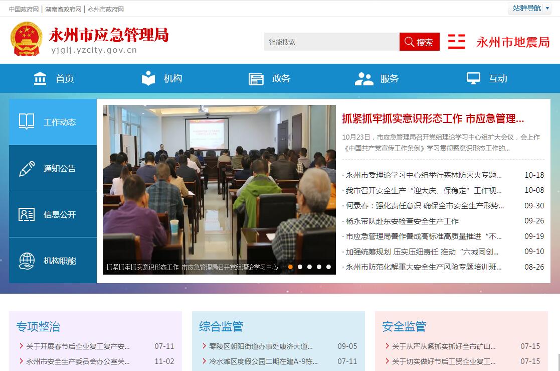 永州市應(yīng)急管理局是市政府主管安全生產(chǎn)的綜合監(jiān)督管理部門。其主要職責(zé)是:(一)承擔(dān)市安全生產(chǎn)委員會辦公室的日常工作;研究提出安全生產(chǎn)重大方針政策和重要措施的建議;監(jiān)督檢查、指導(dǎo)協(xié)調(diào)市政府有關(guān)部門和各縣區(qū)政府、金洞林場、回龍圩管理區(qū)的安全生產(chǎn)工作,檢查落實安全生產(chǎn)責(zé)任制和生產(chǎn)安全事故責(zé)任追究制;組織全市安全生產(chǎn)大檢查、專項督查和安全生產(chǎn)專項整治;參與研究有關(guān)部門在產(chǎn)業(yè)政策、資金投入、科技發(fā)展等工作中涉及安全生產(chǎn)的相關(guān)工作;負(fù)責(zé)組織市內(nèi)重大事故調(diào)查處理和辦理結(jié)案工作;組織協(xié)調(diào)重大事故應(yīng)急救援工作;指導(dǎo)協(xié)調(diào)全市安全生產(chǎn)行政執(zhí)法工作;承辦市安全生產(chǎn)委員會召開的會議和重要活動,督促、檢查安全生產(chǎn)委員會會議決定事項的貫徹落實情況;承辦市安全生產(chǎn)委員會交辦的其他事項。(二)綜合管理全市安全生產(chǎn)工作。組織起草安全生產(chǎn)方面的規(guī)范性文件,研究擬定安全生產(chǎn)工作的辦法措施及規(guī)定;監(jiān)督檢查有關(guān)部門及工礦商貿(mào)行業(yè)貫徹落實國家、省安全生產(chǎn)規(guī)章規(guī)程和安全生產(chǎn)標(biāo)準(zhǔn)的情況。(三)依法行使市政府安全生產(chǎn)綜合監(jiān)督管理職權(quán),指導(dǎo)、協(xié)調(diào)和監(jiān)督有關(guān)部門安全生產(chǎn)監(jiān)督管理工作;制定全市安全生產(chǎn)發(fā)展規(guī)劃;定期分析和預(yù)測全市安全生產(chǎn)形勢,研究、協(xié)調(diào)和解決安全生產(chǎn)中的重大問題。(四)負(fù)責(zé)發(fā)布全市安全生產(chǎn)信息,綜合管理全市生產(chǎn)安全傷亡事故調(diào)度統(tǒng)計和安全生產(chǎn)行政執(zhí)法分析工作,按規(guī)定上報傷亡事故情況;依法組織、協(xié)調(diào)重大、特大事故的調(diào)查處理工作,并監(jiān)督事故查處的落實情況;組織、指揮和協(xié)調(diào)安全生產(chǎn)應(yīng)急救援工作,受國家、省安全生產(chǎn)監(jiān)督管理局的委托,參與協(xié)助特別和特大事故的調(diào)查處理。(五)負(fù)責(zé)綜合監(jiān)督管理危險化學(xué)品和煙花爆竹的安全生產(chǎn)工作。(六)指導(dǎo)、協(xié)調(diào)全市安全生產(chǎn)檢測檢驗工作;組織實施對工礦商貿(mào)企業(yè)安全生產(chǎn)條件和有關(guān)設(shè)備(特種設(shè)備除外)進(jìn)行檢測檢驗、安全評價、安全培訓(xùn)、安全咨詢等社會中介組織的資質(zhì)管理工作,并進(jìn)行監(jiān)督檢查。(七)組織、指導(dǎo)全市安全生產(chǎn)宣傳教育工作,負(fù)責(zé)安全生產(chǎn)監(jiān)管人員的安全培訓(xùn)、考核工作;依法組織、指導(dǎo)并監(jiān)督全市特種作業(yè)人員(特種設(shè)備作業(yè)人員除外)的考核工作和生產(chǎn)經(jīng)營單位主要經(jīng)營管理者、安全管理人員的安全資格考核工作;監(jiān)督檢查生產(chǎn)經(jīng)營單位安全培訓(xùn)工作。(八)負(fù)責(zé)監(jiān)督管理市屬工礦商貿(mào)企業(yè)安全生產(chǎn)工作,依法監(jiān)督工礦商貿(mào)企業(yè)貫徹執(zhí)行安全生產(chǎn)法律、法規(guī)和有關(guān)規(guī)章、規(guī)程及技術(shù)標(biāo)準(zhǔn)的情況,監(jiān)督檢查其安全生產(chǎn)條件和有關(guān)設(shè)備(特種設(shè)備除外)、材料、勞動防護(hù)用品的安全管理工作情況,依法查處其違法、違規(guī)行為和不具備安全生產(chǎn)條件的生產(chǎn)經(jīng)營單位。(九)根據(jù)《行政許可法》、《安全生產(chǎn)許可證條例》及有關(guān)的法律、法規(guī)和國家標(biāo)準(zhǔn)或行業(yè)標(biāo)準(zhǔn)規(guī)定的安全生產(chǎn)條件與程序,對涉及安全生產(chǎn)需要審查批準(zhǔn)(包括批準(zhǔn)、核準(zhǔn)、許可、注冊、認(rèn)證、頒發(fā)證照等)或驗收的事項,進(jìn)行審批、審核或驗收;對未依法取得批準(zhǔn)或驗收合格的單位擅自從事有關(guān)活動的,依法予以查處;對取得批準(zhǔn)后不再具備安全生產(chǎn)條件的,依法撤銷原批準(zhǔn)。(十)依法監(jiān)督檢查新建、改建、擴(kuò)建工程項目可行性研究的安全評價及安全設(shè)施與主體工程同時設(shè)計、同時施工、同時投產(chǎn)使用(簡稱"三同時")情況;依法監(jiān)督檢查生產(chǎn)經(jīng)營單位作業(yè)場所職業(yè)衛(wèi)生情況和重大危險源監(jiān)控、重大事故隱患的整改情況。(十一)督促、指導(dǎo)縣區(qū)級安全生產(chǎn)監(jiān)督管理部門在分管區(qū)域和職責(zé)范圍內(nèi)做好安全生產(chǎn)和監(jiān)督管理工作。(十二)擬定全市安全生產(chǎn)的發(fā)展規(guī)劃與科技規(guī)劃,組織、指導(dǎo)安全生產(chǎn)重大科學(xué)技術(shù)研究、科研成果鑒定和先進(jìn)技術(shù)推廣、示范工作。(十三)歸口管理國家和省級、市級安全技術(shù)改造、安全技術(shù)措施、公共安全重大事故隱患治理等安全生產(chǎn)專項資金項目,并監(jiān)督檢查其資金的使用情況;監(jiān)督檢查生產(chǎn)經(jīng)營單位安全生產(chǎn)所必需資金的投入及安全生產(chǎn)費用的提取和使用情況。(十四)協(xié)同有關(guān)部門組織實施注冊