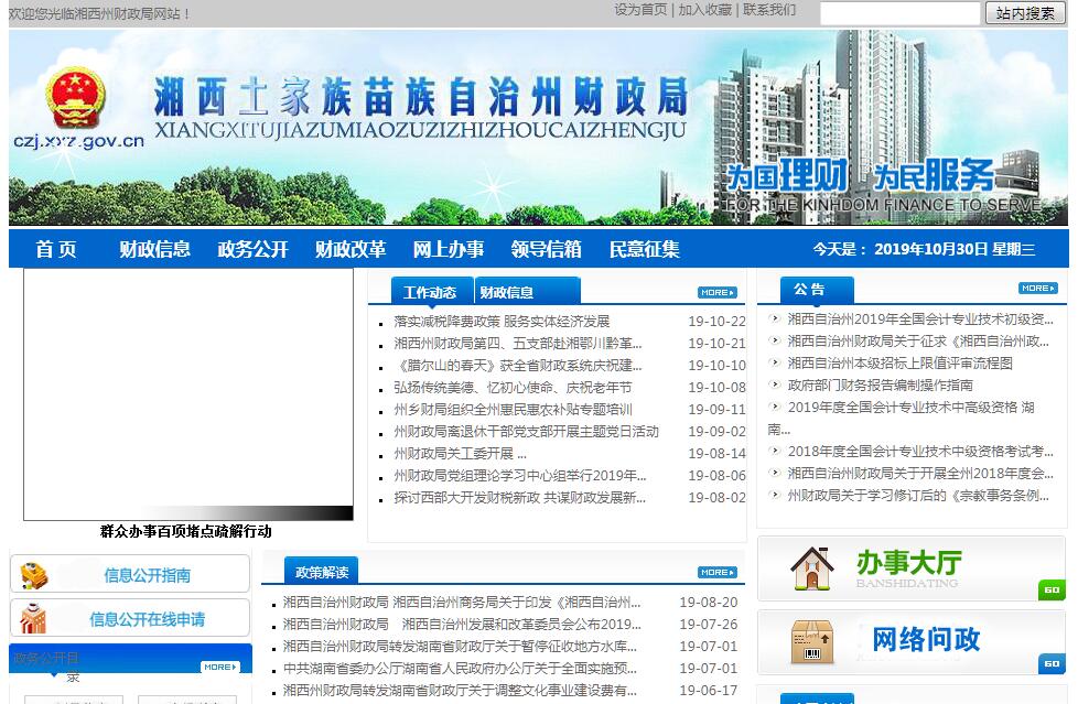 湘西州財政局主要職責:(一)組織貫徹執(zhí)行國家財稅方針政策,執(zhí)行全州財政政策、改革方案,指導全州財政工作;分析預測宏觀經(jīng)濟形勢,參與制定各項宏觀經(jīng)濟政策;提出運用財稅政策實施宏觀調(diào)控和綜合平衡社會財力的建設;擬定和執(zhí)行州與縣市、政府與企業(yè)的分配政策,完善鼓勵公益事業(yè)發(fā)展的財稅政策。(二)起草財政、財務、會計管理的地方性法規(guī)、規(guī)章草案,制定和執(zhí)行財政、財務、會計管理的制度及辦法,參與涉外財政、債務等的國際談判,并簽訂有關協(xié)議、規(guī)定。(三)承擔州本級各項財政收支管理的責任。負責編制年度州本級預決算草案并組織執(zhí)行。代編全州財政收支預算,匯總?cè)葚斦倹Q算;受州人民政府委托,向州人大常委會報告決算。組織制定州本級經(jīng)費開支標準、定額,負責審核批復部門(單位)的年度預決算。(四)負責政府非稅收入管理,負責政府性基金管理,按規(guī)定管理行政事業(yè)性收費。管理財政票據(jù)。(五)組織制定國庫管理制度、國庫集中支付制度,指導和監(jiān)督州本級國庫業(yè)務,按規(guī)定開展國庫現(xiàn)金管理工作。負責制定政府采購制度并監(jiān)督管理。(六)貫徹執(zhí)行國家稅收法律、行政法規(guī)和稅收調(diào)整政策,反饋政策執(zhí)行情況,提出調(diào)整建議。研究制定州管理權(quán)限內(nèi)有關稅收政策及稅收政策調(diào)整方案并組織實施,按照規(guī)定權(quán)限,審批或報請州人民政府審批地方稅收的減免工作。負責契稅、耕地占用稅的征收管理,按規(guī)定承擔地方關稅管理的有關工作。(七)負責制定全州行政事業(yè)單位國有資產(chǎn)管理規(guī)章制度,按規(guī)定管理行政事業(yè)單位國有資產(chǎn),制定需要全州統(tǒng)一規(guī)定的開支標準和支出政策,負責財政預算內(nèi)行政、事業(yè)單位和社會團體的非貿(mào)易外匯管理。(八)負責審核和匯總編制全州國有資本經(jīng)營預決算草案,制定國有資本經(jīng)營預算的制度和辦法,收取州本級企業(yè)國有資本收益,組織實施企業(yè)財務制度,參與擬訂企業(yè)國有資產(chǎn)管理相關制度,負責未納入州國資委監(jiān)管企業(yè)的國有資產(chǎn)管理,按規(guī)定管理資產(chǎn)評估工作。(九)負責辦理和監(jiān)督州財政的經(jīng)濟發(fā)展支出、州級政府性投資項目的財政撥款,參與擬訂州建設投資的有關政策,組織實施基本建設財務制度,負責有關政策性補貼和專項儲備資金財政管理工作。負責農(nóng)業(yè)綜合開發(fā)管理工作。(十)會同有關部門管理州財政社會保障和就業(yè)及醫(yī)療衛(wèi)生支出,組織實施社會保障資金(基金)的財務管理制度,編制州社會保障預決算草案。(十一)貫徹執(zhí)行政府內(nèi)外債務管理的政策、制度和辦法,防范財政風險。負責統(tǒng)一管理州政府外債,制定基本管理制度。按規(guī)定管理外國政府和國際金融組織貸(贈)款。承擔財稅領域交流與合作的具體工作。(十二)負責管理全州的會計工作,監(jiān)督和規(guī)范會計行為,組織實施國家統(tǒng)一的會計制度,擬訂并組織實施全省會計行政法規(guī)規(guī)章,指導和監(jiān)督注冊會計師和會計師事務所的業(yè)務,指導和管理社會審計。(十三)監(jiān)督檢查財稅法規(guī)、政策的執(zhí)行情況,反映財政收支管理中的重大問題,提出加強財政管理的政策和建議。(十四)負責政府采購監(jiān)督管理工作。審批政府采購方式,擬定政府采購政策、制度、辦法,依法管理政府采購代理機構(gòu)。監(jiān)督政府采購制度和合同執(zhí)行情況。(十五)承辦州委、州人民政府交辦的其他事項。