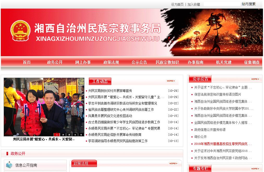 湘西州民族宗教事務(wù)局主要職責(zé):(一)貫徹落實(shí)黨和國家關(guān)于民族宗教工作的方針、政策、法律、法規(guī)以及省委、省政府和州委、州政府的決策部署;負(fù)責(zé)起草有關(guān)民族宗教事務(wù)的地方性法規(guī)、規(guī)章草案,組織擬訂民族宗教相關(guān)工作政策,并督促檢查落實(shí);指導(dǎo)實(shí)施和完善民族區(qū)域自治制度建設(shè),保障少數(shù)民族的合法權(quán)益。(二)組織開展民族宗教理論、政策和問題的調(diào)查研究,提出有關(guān)民族宗教工作的政策建議。(三)負(fù)責(zé)協(xié)調(diào)推動有關(guān)部門履行民族宗教工作相關(guān)職責(zé);促進(jìn)民族宗教政策在經(jīng)濟(jì)發(fā)展和社會事業(yè)有關(guān)領(lǐng)域的實(shí)施、銜接; 對全州民族宗教工作進(jìn)行業(yè)務(wù)指導(dǎo)。(四)研究提出協(xié)調(diào)民族關(guān)系、宗教關(guān)系的工作建議,會同有關(guān)部門處理民族關(guān)系、宗教關(guān)系中的重大事項(xiàng);參與協(xié)調(diào)民族地區(qū)社會穩(wěn)定工作,促進(jìn)各民族共同團(tuán)結(jié)奮斗、共同繁榮發(fā)展,維護(hù)國家統(tǒng)一。(五)組織擬訂全州少數(shù)民族事業(yè)發(fā)展專項(xiàng)規(guī)劃,監(jiān)督檢查規(guī)劃實(shí)施情況;參與制定少數(shù)民族和民族地區(qū)經(jīng)濟(jì)社會相關(guān)領(lǐng)域的發(fā)展規(guī)劃;促進(jìn)建立和完善少數(shù)民族事業(yè)發(fā)展綜合評價(jià)監(jiān)測體系;推進(jìn)實(shí)施民族宗教事務(wù)服務(wù)體系和管理信息化建設(shè)。(六)研究分析全州經(jīng)濟(jì)發(fā)展和社會事業(yè)方面的問題并提出特殊政策建議;組織協(xié)調(diào)或參與實(shí)施州委、州政府部署的民生工 程相關(guān)工作;參與西部開發(fā)、武陵山片區(qū)區(qū)域發(fā)展與扶貧攻堅(jiān)事 宜;參與組織協(xié)調(diào)民族地區(qū)科技發(fā)展、對口支援、經(jīng)濟(jì)技術(shù)協(xié)作、民族貿(mào)易、民族特需用品生產(chǎn)及優(yōu)惠政策落實(shí)等相關(guān)工作;負(fù)責(zé) 全州少數(shù)民族發(fā)展資金的管理和使用工作。(七)負(fù)責(zé)組織指導(dǎo)全州民族宗教方面的法律法規(guī)、政策及基本知識的宣傳教育工作;組織開展民族團(tuán)結(jié)進(jìn)步創(chuàng)建活動;承辦州政府民族團(tuán)結(jié)進(jìn)步表彰活動;指導(dǎo)城市民族工作,協(xié)調(diào)城市民族關(guān)系;開展發(fā)放清真標(biāo)志牌和清真生產(chǎn)企業(yè)改變服務(wù)方向服務(wù)工作。(八)負(fù)責(zé)管理全州少數(shù)民族語言文字工作,指導(dǎo)少數(shù)民族語言文字的教學(xué)、翻譯、編輯、出版和民族古籍的搜集、整理、出版、研究工作;負(fù)責(zé)少數(shù)民族文藝調(diào)演的組織參演工作;負(fù)責(zé)少數(shù)民族傳統(tǒng)體育運(yùn)動會的組團(tuán)參賽工作。(九)依法履行宗教事務(wù)管理職責(zé),依法保護(hù)公民宗教信仰自由和正常的宗教活動,維護(hù)宗教界合法權(quán)益,促進(jìn)宗教關(guān)系和諧。(十)指導(dǎo)宗教團(tuán)體依法依章開展活動,支持宗教團(tuán)體加強(qiáng)自身建設(shè),推動宗教團(tuán)體在宗教界開展愛國主義、社會主義和維護(hù)祖國統(tǒng)一、民族團(tuán)結(jié)的自我教育;指導(dǎo)和管理全州宗教自養(yǎng)企事業(yè),辦理成立、變更、注銷州級宗教團(tuán)體審核和宗教活動場所設(shè)立(改建、擴(kuò)建、新建、重建)審批及財(cái)務(wù)監(jiān)督工作,做好在華外國人集體進(jìn)行臨時(shí)宗教活動地點(diǎn)審批。(十一)指導(dǎo)縣市民族宗教事務(wù)部門依法履行管理職責(zé),防范利用民族宗教進(jìn)行的非法、違法活動,抵御境外利用民族宗教進(jìn)行的分裂、滲透、破壞活動,配合有關(guān)部門做好防范和處置邪教問題。(十二)負(fù)責(zé)民族宗教事務(wù)方面的外事管理工作,組織指導(dǎo)民族宗教工作領(lǐng)域有關(guān)對外和對港澳臺的交流、交往與合作;參與涉及民族宗教事務(wù)的對外宣傳工作;加強(qiáng)同民族自治地方的聯(lián)系,組織接待少數(shù)民族團(tuán)體學(xué)習(xí)、參觀、考察等事宜。(十三)參與擬訂少數(shù)民族干部人才隊(duì)伍、宗教工作隊(duì)伍建 設(shè)規(guī)劃,研究提出少數(shù)民族干部隊(duì)伍建設(shè)的政策建議,聯(lián)系少數(shù)民族干部和宗教界代表人士,協(xié)助有關(guān)部門做好少數(shù)民族干部的 培養(yǎng)、教育和使用等工作;管理和指導(dǎo)全州宗教工作干部的政治業(yè)務(wù)培訓(xùn),負(fù)責(zé)骨干宗教教職人員的思想教育工作。(十四)承辦州人民政府交辦的其他事項(xiàng)。