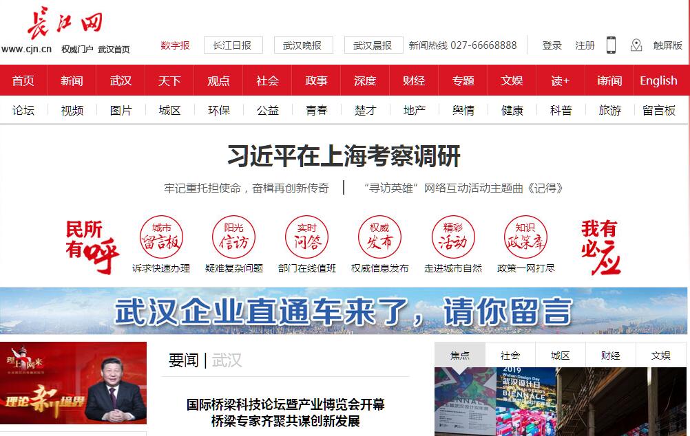 長江網(wǎng)成立于2002年8月,是經(jīng)武漢市委市政府決定,由湖北省政府新聞辦申報(bào),國務(wù)院新聞辦批準(zhǔn)的武漢地區(qū)唯一的綜合性新聞網(wǎng)站,是全國重點(diǎn)地方新聞網(wǎng)站。歷經(jīng)十年發(fā)展,長江網(wǎng)已成為在互聯(lián)網(wǎng)上提供以新聞信息為主的綜合性多功能新型網(wǎng)絡(luò)媒體。2010年12月20日,根據(jù)市委決定,長江網(wǎng)整合進(jìn)入長江日?qǐng)?bào)報(bào)業(yè)集團(tuán),最大程度實(shí)現(xiàn)資源共享,深入融合,全面推進(jìn)全媒體建設(shè)。2011年7月,集團(tuán)新成立武漢長江新媒體有限公司作為長江網(wǎng)的運(yùn)營公司。長江網(wǎng)開設(shè)有13個(gè)新聞?lì)l道,8個(gè)生活資訊頻道,以及英語新聞?lì)l道。另外,還有視頻直播、長江論壇、微博、長江手機(jī)報(bào)等傳播互動(dòng)平臺(tái)。每天24小時(shí)滾動(dòng)發(fā)布武漢以及湖北新聞2000余條。作為武漢市網(wǎng)絡(luò)新聞門戶,長江網(wǎng)以“及時(shí)、真實(shí)、客觀、權(quán)威”為宗旨,成為武漢市各種重要新聞的網(wǎng)絡(luò)首發(fā)平臺(tái)。對(duì)采編質(zhì)量不斷追求,曾獲中國新聞獎(jiǎng),多次獲得省市各類新聞獎(jiǎng)項(xiàng)。作為武漢市唯一擁有新聞采訪權(quán)的網(wǎng)絡(luò)新聞媒體,長江網(wǎng)堅(jiān)持“新聞立網(wǎng)”, 始終牢牢把握正確輿論導(dǎo)向,以服務(wù)地方經(jīng)濟(jì)社會(huì)發(fā)展為己任,用先進(jìn)的文化占領(lǐng)互聯(lián)網(wǎng)陣地,以優(yōu)質(zhì)的網(wǎng)絡(luò)新聞內(nèi)容服務(wù)廣大網(wǎng)民,全方位、多角度、立體化宣傳武漢。
