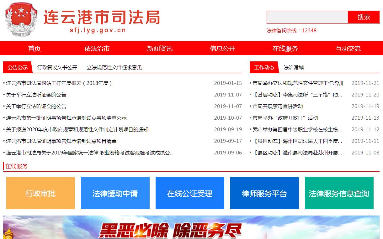 您當(dāng)前的位置:網(wǎng)站首頁 > 目錄主分類 > 社會教育 > 政府組織 > 地方政府網(wǎng)站 > 連云港市司法局