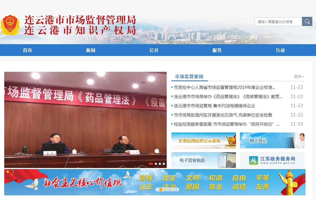 您當(dāng)前的位置:網(wǎng)站首頁 > 目錄主分類 > 社會(huì)教育 > 政府組織 > 地方政府網(wǎng)站 > 連云港市市場監(jiān)督管理局