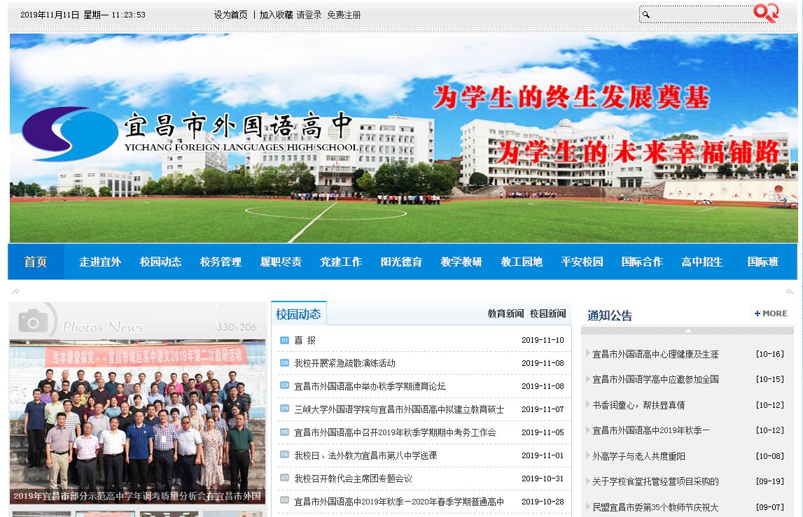 宜昌市外國語高中位于中國湖北省宜昌市城區(qū),這里自然風(fēng)光和生態(tài)環(huán)境優(yōu)美,東臨長江,南靠磨基山公園,北與葛洲壩水利樞紐工程隔岸相望,被市民稱為“江景學(xué)?!焙汀肮珗@學(xué)校”。學(xué)校有齊備的現(xiàn)代化教學(xué)、辦公及生活設(shè)施和條件,教學(xué)樓、科技樓、辦公樓裝備精良,學(xué)生公寓、外教公寓、飲食中心、醫(yī)務(wù)室設(shè)施齊全,學(xué)生運動場、室內(nèi)體育館器械先進(jìn)。宜昌市外國語高中前身為創(chuàng)建于1959年的“宜昌市第十二中學(xué)”,2001年經(jīng)市人民政府同意,與武漢外國語學(xué)校合作辦學(xué),創(chuàng)辦“宜昌外國語學(xué)校”。2017年8月,根據(jù)宜昌市教育“十三五”規(guī)劃提出的高中特色化發(fā)展戰(zhàn)略,學(xué)校更名為“宜昌市外國語高中”。幾十年來,學(xué)校按照市委、市政府和市教育局提出的“高起點,高標(biāo)準(zhǔn),高質(zhì)量”的特色辦學(xué)要求,秉持“為學(xué)生的終身發(fā)展奠基,為學(xué)生的未來幸福鋪路”和“質(zhì)量立校,特色強(qiáng)校,實干興?!钡霓k學(xué)理念,堅持走“文理并重、外語特色、國際合作”的發(fā)展之路,致力于創(chuàng)辦“特色鮮明,全國一流,國際影響”的特色名校,取得了突出的辦學(xué)業(yè)績,贏得了社會的普遍贊譽(yù)。宜昌市外國語高中現(xiàn)有15-18歲在校學(xué)生約1200人,教職員工160人。學(xué)校擁有全國、省、市級拔尖人才多名,特級教師1名,省級骨干教師10名,宜昌名師工作室兩個,宜昌名師6名,市級學(xué)科帶頭人及宜昌市高考備考核心成員20名。20多名教師參加全國及省、市優(yōu)質(zhì)課競賽獲得一、二等獎,近70%的教師獲得高級職稱,“陽光德育”等多個國家、省級課題通過驗收。學(xué)校嚴(yán)格按照國家教育部要求開設(shè)課程開足課時,所開課程包括核心基礎(chǔ)課程、素質(zhì)提升課程、社會實踐課程和特色校本課程,組建了三十多個學(xué)生社團(tuán)和俱樂部,每學(xué)年組織開展“體育科技節(jié)”、“中外文化藝術(shù)節(jié)”、“讀書節(jié)”等活動。學(xué)校常年聘請外教傳授英語口語和國外先進(jìn)文化,開設(shè)日語、法語、德語等第二外語課程。學(xué)校與美國Green Local Schools, Camden Hills Regional High School, 加拿大多倫多市威爾士高中Wales College Secondary School、日本富士國際語學(xué)院等四所學(xué)校結(jié)成友好學(xué)校,在師生語言和文化交流等方面開展了廣泛合作,每年組織學(xué)生赴歐、美、澳、日等地著名中學(xué)和大學(xué)開展游學(xué)夏令營。學(xué)校已成為宜昌教育對外交流的重要窗口。2016年,我校與新東方教育科技集團(tuán)合作開辦國際班。2017年開辦了法語、日語兩個小語種班。學(xué)校從2014年起致力于打造數(shù)字化智慧校園,新建了高標(biāo)準(zhǔn)的錄播教室、英語情景教室、理化生數(shù)字化探究實驗室、數(shù)字化學(xué)術(shù)報告廳、學(xué)生劇場等現(xiàn)代化教學(xué)設(shè)施。與西安恒坐標(biāo)教育科技集團(tuán)合作,大膽探索小螞蟻移動教學(xué)平臺及微課的應(yīng)用與研究,實現(xiàn)網(wǎng)上直播開課,成為全國知名的互聯(lián)網(wǎng)+信息技術(shù)應(yīng)用先進(jìn)單位。學(xué)校還向國家教育部考試中心申請托福、雅思標(biāo)準(zhǔn)化考點建設(shè),讓宜昌學(xué)子受益。從創(chuàng)辦至今,學(xué)校取得了跨越式發(fā)展。連續(xù)10年各學(xué)科均獲得宜昌市高考教學(xué)質(zhì)量獎。近年來,一大批優(yōu)秀的學(xué)生以優(yōu)異成績考入復(fù)旦大學(xué)、武漢大學(xué)、華中科技大學(xué)、北京外國語大學(xué)、上海外國語大學(xué)等國內(nèi)知名高校和美國、加拿大、澳大利亞等國外高校深造。2006年學(xué)校被授予“宜昌市名牌學(xué)?!保?008年被評為“宜昌市十佳文明示范窗口”,2009年被評為“宜昌市花園式學(xué)校”,2009年被授予“湖北省A級衛(wèi)生單位”, 2015年被市直機(jī)關(guān)工委表彰為“紅旗黨支部”,2006-2017連續(xù)五次被省委省政府授予“湖北省文明單位”稱號,2016年榮獲“宜昌市教育技術(shù)工作先進(jìn)學(xué)?!?,2016年獲宜昌市“市民最放心餐飲單位”, 2016年被授予“國家科技支撐計劃課題科普示范基地”,2016年獲“宜昌市教育局文明宿舍”,2017年高三年級組被市總工會授予“工人先鋒號”榮譽(yù)稱號,2014、2016年分獲湖北省中學(xué)生運動會乒乓球男團(tuán)第二名、女團(tuán)第三名,2015年獲得湖北省青少年校園足球聯(lián)賽第四名。宜昌市外國語高中熱誠歡迎您!