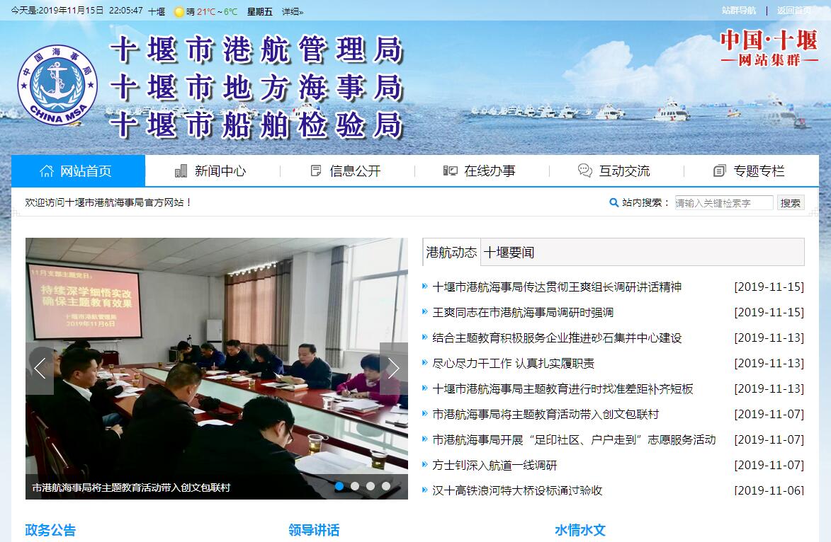 十堰市港航管理局(十堰市地方海事局、十堰市船舶檢驗(yàn)局)是隸屬市交通運(yùn)輸局領(lǐng)導(dǎo),實(shí)行一門三牌、合署辦公的自收自支副縣級(jí)事業(yè)單位。內(nèi)設(shè)辦公室、財(cái)務(wù)科、征稽科、運(yùn)輸科、港航科、法制科、航政科、船檢科、航道段等11個(gè)科室。業(yè)務(wù)接受省港航管理局(地方海事局、船舶檢驗(yàn)局)指導(dǎo),對(duì)縣(市)港航海事業(yè)務(wù)工作實(shí)行指導(dǎo)。主要負(fù)責(zé)編制全市水運(yùn)發(fā)展規(guī)劃,擬定行業(yè)管理規(guī)章制度;全市水路運(yùn)輸信息的收集整理,運(yùn)輸形勢(shì)的研究預(yù)測(cè);全市水路客貨運(yùn)輸、港口裝卸和水運(yùn)服務(wù)業(yè)經(jīng)營(yíng)者的設(shè)立審查、客運(yùn)航線的審批、新增客貨運(yùn)輸船舶的審批、登記、許可證發(fā)放,船舶營(yíng)業(yè)運(yùn)輸證的核發(fā),水運(yùn)運(yùn)價(jià)、運(yùn)輸票證的管理工作;全市船舶設(shè)計(jì)圖紙的審批、監(jiān)造,船舶及船用產(chǎn)品的檢驗(yàn)與發(fā)證;全市港航安全監(jiān)督、海事處理;全市港航基礎(chǔ)設(shè)施建設(shè)市場(chǎng)管理,核準(zhǔn)臨河、跨河、攔河建筑物的通航標(biāo)準(zhǔn)和技術(shù)要求,航道維護(hù)與管理;全市港口規(guī)劃和岸線審批、港口建設(shè)和公共設(shè)施維護(hù)、港口經(jīng)營(yíng)市場(chǎng)的管理。