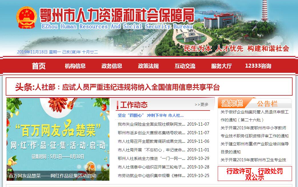 | 網(wǎng)站名稱: | 鄂州市人力資源和社會(huì)保障局 | ||