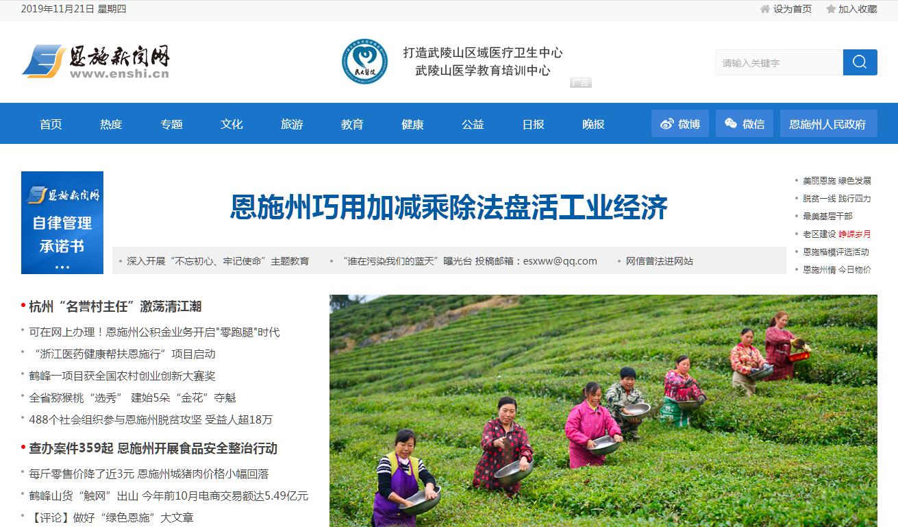 恩施新聞網(wǎng)是恩施日報社主管主辦的恩施州綜合門戶網(wǎng)站,設置有專題、 文化、 旅游、體育、教育、 健康 、圖片、視點、美食、財經(jīng)、汽車、房產(chǎn)、商城、分類、游戲等頻道,開設有微博、博客、論壇、留言等互動功能。恩施新聞網(wǎng)將致力于宣傳、貫徹黨和政府的路線、方針、政策和法律法規(guī),發(fā)布本州及國內(nèi)外的大事要事,提供各種民眾所需信息和服務,擴大對外宣傳,介紹本州政治、經(jīng)濟、文化及民俗、民風特色,豐富人民群眾的文化生活,為我州經(jīng)濟社會全面發(fā)展擂鼓助威。努力建設成一個依托《恩施日報》、《恩施晚報》新聞資源,對本地新聞進行網(wǎng)上報道的新聞平臺;全方位宣傳恩施州的自然文化資源、獨特人文景觀的宣傳平臺;整合信息資源,建立政府信息資源庫,發(fā)布州委州政府黨務政務信息、電子商務信息、招商引資等各種信息的信息發(fā)布平臺;建立以事務鏈為中心的政務公開系統(tǒng),體現(xiàn)服務型政府新形象的政府形象展示平臺;關(guān)注老百姓生活的點點滴滴、為老百姓的衣、食、住、行提供參考和指導的服務平臺;注重社區(qū)功能開發(fā),運用網(wǎng)絡的互動、開放等優(yōu)勢,開辟網(wǎng)上社區(qū),結(jié)合各行各業(yè),建設社區(qū)綜合信息網(wǎng)站,成為為廣大網(wǎng)友提供交流場所的交流平臺。同時,開展商務服務活動,充分利用報社的信息優(yōu)勢,整合商品資源,同各企業(yè)做有效鏈接,成為溝通客商與企業(yè)的商務服務平臺。