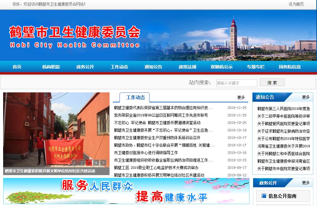 鶴壁市衛(wèi)生健康委員會主要職責(zé):(一)貫徹執(zhí)行黨和國家關(guān)于衛(wèi)生健康工作的法律、法規(guī)和方針、政策;組織實施河南省衛(wèi)生健康、中醫(yī)藥事業(yè)發(fā)展的地方性法規(guī)和省政府規(guī)章、政策規(guī)劃,衛(wèi)生健康地方標(biāo)準(zhǔn)和技術(shù)規(guī)范。起草全市衛(wèi)生健康規(guī)范性文件, 提出并擬定完善衛(wèi)生健康政策措施。 負(fù)責(zé)協(xié)調(diào)推進(jìn)全市醫(yī)療保障工作,統(tǒng)籌規(guī)劃全市衛(wèi)生健康服務(wù)資源配置,指導(dǎo)全市衛(wèi)生健康規(guī)劃的編制和實施。(二)負(fù)責(zé)制定全市疾病預(yù)防控制規(guī)劃、免疫規(guī)劃、嚴(yán)重危害人民健康的公共衛(wèi)生問題的干預(yù)措施并組織落實, 根據(jù)國家檢疫傳染病和監(jiān)測傳染病目錄, 制定全市衛(wèi)生應(yīng)急和緊急醫(yī)學(xué)救援預(yù)案、突發(fā)公共衛(wèi)生事件監(jiān)測和風(fēng)險評估計劃,組織和指導(dǎo)全市突發(fā)公共衛(wèi)生事件預(yù)防控制和各類突發(fā)公共事件的醫(yī)療衛(wèi)生救援,根據(jù)授權(quán)發(fā)布突發(fā)公共衛(wèi)生事件應(yīng)急處置信息。(三)負(fù)責(zé)組織實施職責(zé)范圍內(nèi)的職業(yè)衛(wèi)生、放射衛(wèi)生、 環(huán)境衛(wèi)生、學(xué)校衛(wèi)生、公共場所衛(wèi)生、飲用水衛(wèi)生管理規(guī)范、標(biāo)準(zhǔn)和政策措施,組織開展相關(guān)監(jiān)測、調(diào)查、評估和監(jiān)督工作,負(fù)責(zé)傳染病防治監(jiān)督工作。組織開展食品安全風(fēng)險監(jiān)測、評估工作,為食源性疾病及與食品安全事故有關(guān)的流行病學(xué)調(diào)查提供技術(shù)支持。(四)負(fù)責(zé)組織擬訂并實施基層衛(wèi)生健康服務(wù)、婦幼衛(wèi)生發(fā)展規(guī)劃和政策措施,指導(dǎo)全市基層衛(wèi)生健康、婦幼衛(wèi)生服務(wù)體系建設(shè),推進(jìn)基本公共衛(wèi)生健康服務(wù)均等化,完善基層運行新機(jī)制和鄉(xiāng)村醫(yī)生管理制度。(五)負(fù)責(zé)制定全市醫(yī)療機(jī)構(gòu)和醫(yī)療服務(wù)全行業(yè)管理辦法。制定醫(yī)療機(jī)構(gòu)及其醫(yī)療服務(wù)、醫(yī)療技術(shù)、醫(yī)療質(zhì)量、醫(yī)療安全以及采供血機(jī)構(gòu)管理的規(guī)范并組織實施, 會同有關(guān)部門貫徹執(zhí)行國家衛(wèi)生專業(yè)技術(shù)人員準(zhǔn)入、資格標(biāo)準(zhǔn),制定和實施衛(wèi)生專業(yè)技術(shù)人員執(zhí)業(yè)規(guī)則和服務(wù)規(guī)范,建立醫(yī)療服務(wù)評價和監(jiān)督管理體系。(六)負(fù)責(zé)組織推進(jìn)公立醫(yī)院改革,建立公益性為導(dǎo)向的績效考核和評價運行機(jī)制,建設(shè)和諧醫(yī)患關(guān)系,提出醫(yī)療服務(wù)和藥品價格政策的建議。(七)貫徹落實國家藥物政策和國家基本藥物制度。參與實施國家、省藥品法典和基本藥物目錄。組織實施基本藥物采購、配送、使用的政策措施。會同相關(guān)部門提出國家基本藥物目錄省內(nèi)藥品生產(chǎn)鼓勵扶持政策建議。 提出我市國家基本藥物價格政策建議。(八)貫徹落實生育政策,組織實施促進(jìn)全市出生人口性別平衡的政策措施,組織監(jiān)測計劃生育發(fā)展動態(tài),提出發(fā)布計劃生育安全預(yù)警預(yù)報信息建議。 制定計劃生育技術(shù)服務(wù)管理制度并監(jiān)督實施。 制定優(yōu)生優(yōu)育和提高出生人口素質(zhì)的政策措施并組織實施, 推動實施計劃生育生殖健康促進(jìn)計劃, 降低出生缺陷人口數(shù)量。(九)組織建立計劃生育利益導(dǎo)向、計劃生育特殊困難家庭扶助和促進(jìn)計劃生育家庭發(fā)展等制度、機(jī)制。負(fù)責(zé)協(xié)調(diào)推進(jìn)有關(guān)部門、群眾團(tuán)體履行計劃生育工作相關(guān)職責(zé),建立與經(jīng)濟(jì)社會發(fā)展政策銜接機(jī)制,提出穩(wěn)定低生育水平的政策措施。(十)制定流動人口計劃生育服務(wù)管理制度并組織落實, 推動建立流動人口計劃生育信息共享和公共服務(wù)工作機(jī)制。(十一)組織擬訂全市衛(wèi)生健康人才發(fā)展規(guī)劃,指導(dǎo)衛(wèi)生健康人才隊伍建設(shè)。 加強(qiáng)全科醫(yī)生等急需緊缺專業(yè)人才培養(yǎng),貫徹落實國家住院醫(yī)師和專科醫(yī)師規(guī)范化培訓(xùn)制度。(十二)組織擬訂全市衛(wèi)生健康科技發(fā)展規(guī)劃,組織實施衛(wèi)生健康相關(guān)科研項目。參與制定醫(yī)學(xué)教育發(fā)展規(guī)劃,組織指導(dǎo)開展畢業(yè)后醫(yī)學(xué)教育和繼續(xù)醫(yī)學(xué)教育。(十三)指導(dǎo)全市衛(wèi)生健康工作,完善綜合監(jiān)督執(zhí)法體系,規(guī)范執(zhí)法行為,監(jiān)督檢查法律、法規(guī)和政策措施落實, 組織查處重大違法行為。監(jiān)督落實計劃生育一票否決制。(十四)負(fù)責(zé)衛(wèi)生健康宣傳、健康教育、健康促進(jìn)和信息化建設(shè)等工作,依法組織開展統(tǒng)計調(diào)查,參與市人口基礎(chǔ)信息庫建設(shè)。根據(jù)國家、省要求,組織衛(wèi)生健康國際交流合作與衛(wèi)生援外工作。(十五)制定全市中醫(yī)藥中長期發(fā)展規(guī)劃,并納入衛(wèi)生健康事業(yè)發(fā)展總體規(guī)劃和戰(zhàn)略目標(biāo)。(十六) 承擔(dān)全市