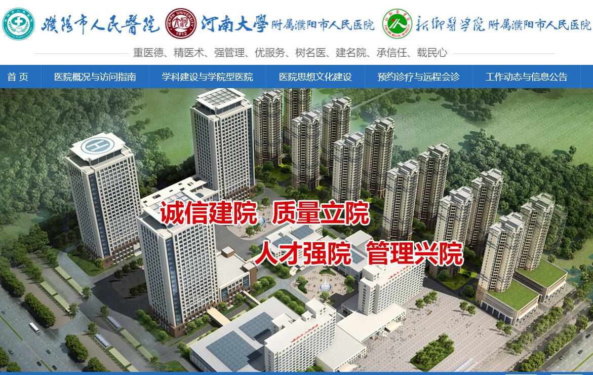 濮陽市人民醫(yī)院1949年建院,1991年搬遷至現(xiàn)址,是三級甲等綜合醫(yī)院、全國百佳醫(yī)院,國家醫(yī)師資格實踐技能考試基地、國家住院醫(yī)師規(guī)范化培訓基地、河南省全科醫(yī)生規(guī)范化培養(yǎng)基地、河南省博士后創(chuàng)新實踐基地,河南大學、河南中醫(yī)藥大學、新鄉(xiāng)醫(yī)學院附屬醫(yī)院和全過程教學基地、碩士研究生培養(yǎng)基地,是十余所高等院校的實習基地。醫(yī)院占地面積150畝,規(guī)劃建筑面積20萬平方米。開放床位2500張,年門急診180萬人次,出院患者8萬多人次,手術3萬余臺次?,F(xiàn)有職工2390余人,專業(yè)技術人員占85%以上,其中高級職稱310余名,博士、碩士研究生320余名,省市醫(yī)學會各專業(yè)委員200余人,省市級學科帶頭人、優(yōu)秀專業(yè)技術人才60余人;河南大學、新鄉(xiāng)醫(yī)學院研究生導師20人,大中專院校兼職教師400余人,在院各類學員1500人。醫(yī)院科室設置齊全,設有18個臨床服務部門和6個管理服務部門。學科建設全市領先,河南省醫(yī)學重點學科4個、重點培育學科8個。醫(yī)院是河南省創(chuàng)傷救治中心、胸痛中心,濮陽市急救中心、危重孕產(chǎn)婦救治中心、新生兒重癥救護中心,濮陽市血液病研究所、濮陽市神經(jīng)病學研究所、濮陽市皮膚病研究所等均設置在我院。設備配置和服務能力區(qū)域領先,擁有PET-CT、西門子3.0T磁共振、飛利浦3.0T磁共振、西門子1.5T磁共振,GE256排CT、西門子SPECT-CT、西門子雙源CT、醫(yī)科達加速器、平板DSA、檢驗大生化流水線等大型設備80余臺件。堅持“建人民滿意醫(yī)院、辦百姓放心醫(yī)院”的宗旨,用釘釘子精神抓落實促發(fā)展,醫(yī)患滿意度和社會美譽度持續(xù)提升。在國家衛(wèi)健委組織的滿意度調(diào)查中,門診滿意度全省第一、住院滿意度全省第五、職工滿意度全省第六,2012年-2018年連續(xù)7年被授予“河南省群眾滿意醫(yī)院”稱號;在最新醫(yī)院綜合競爭力排名中,居省域第16位,全國地市級醫(yī)院第152位。