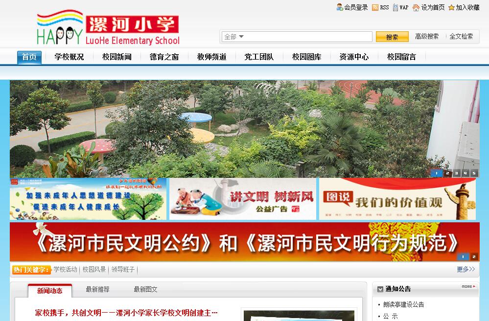 學校秉承“樹人為本,以趣導行,激活思維,靈動生命”的育人理念,在“快樂教育”氛圍里,引導師生“厚德博學、智慧嚴謹、包容合作、科學發(fā)展”。倡導“明德、篤實、機敏、善思”的學風,使每一個學生“彬彬有禮,落落大方,思維敏捷,富有創(chuàng)造力”。學校創(chuàng)設創(chuàng)新課堂,創(chuàng)建智慧校園,在靈活多變的教學活動中激發(fā)學生學習興趣,以別出心裁的實踐活動啟發(fā)學生創(chuàng)新思維,力求使學生在每一節(jié)課堂教學、每一次德育實踐、每一趟研學旅行中都能體會到教與學的樂趣,真正在“樂”系列文化陶冶下“讓學生習慣優(yōu)起來、思維活起來、能力強起來”。堅持“尚德、博學、人文、和諧”的教師教育思路,用充滿活力的教師培養(yǎng)具有創(chuàng)新靈感的學生。尚德即鼓勵教師尊崇高尚師德,愛崗敬業(yè),以德育人,愛心育人;博學則要求教師著眼于學生創(chuàng)新思維的培養(yǎng),不斷更新知識結(jié)構(gòu),豐富知識儲備,及時為學生解疑釋惑,保護學生探索興趣,啟迪學生智慧火花,培養(yǎng)學生創(chuàng)新精神;人文即學校管理以人文本,突出學校服務職能,解除教師后顧之憂,為教師發(fā)展提供寬松的環(huán)境,增強教師的職業(yè)成就感和幸福感;和諧即依托教師教育培訓“青藍工程”的實施,建立行之有效的教師教育培訓機制,鼓勵教師按照“教壇新秀——骨干教師——學科帶頭人——學科導師——專家學者型教師”的發(fā)展梯度,設定專業(yè)成長目標,制定發(fā)展規(guī)劃,在學校多樣化的教育培訓平臺中提升專業(yè)素養(yǎng),強化專業(yè)技能。目前,學校學校147名編制內(nèi)教師中,2名教師成長為河南省教師教育專家、實踐教育專家;同時還擁有各級骨干教師71人,其中市級骨干教師39人,省級骨干教師32人;河南名師4人。承擔各級各類教育科研課題研究22項,8項榮獲省級一等獎。在河南省基礎(chǔ)教研室組織的學科優(yōu)質(zhì)課大賽中,有5名教師榮獲各學科優(yōu)質(zhì)課大賽一等獎。漯河小學在堅持課程標準,開足規(guī)定課程的同時,設計了系列特色社團活動,并在此基礎(chǔ)上致力于設計研發(fā)校本教材,形成具有學校特色的校本課程。其中的書法、剪紙、閱讀課等文化傳承性社團,以寫規(guī)范字、讀經(jīng)誦典、繪畫剪紙的形式熏陶感染孩子,傳承祖國優(yōu)秀傳統(tǒng)文化;體育游戲、籃球、排球、舞蹈、田徑、棋類、民樂、合唱社團,增強了學生運動技能,培養(yǎng)了學生個性特長;尤其是創(chuàng)客教育、科技活動課程,以科技創(chuàng)新為引領(lǐng),讓學生在程序編寫、實物制作、科技體育訓練、科技實踐活動過程中,增強了探索意識,提升了科學素養(yǎng),激活了創(chuàng)新思維,培養(yǎng)了“實事求是、開拓進取”的科學精神。學校教學效果評價集分組合作學習、多元化綜合技能測試、學生發(fā)展綜合評價為一體,變學生為學習的主人。分組合作學習,教師成為學生學習過程中的引領(lǐng)者、合作者,學生在學習中能夠達到知無不言,言無不盡的充分溝通、盡情交流、全面合作的境界;多元化綜合技能測試打破了傳統(tǒng)的、單一的“試卷式”檢測模式,對學生的學習過程、知識水平、基本技能、實踐能力等方面能夠全面了解、綜合評價。評價過程學生自評、小組互評為主、教師指導、點評為輔;學生發(fā)展綜合評價將學生的知識能力、實踐技能、品德發(fā)展、行為習慣、發(fā)展?jié)摿胺较蜻M行了全方位的富有人性化的評價。學生自評使學生正確認識自我;小組互評使學生了解他人;家長評價實現(xiàn)學校與家庭教育的和諧統(tǒng)一;教師評價為學生準確定位、指明方向,引導學生實現(xiàn)學習方法的改變與創(chuàng)新。“樂讀”校園讀書節(jié)、“樂雅”校園藝術(shù)節(jié)、“樂創(chuàng)”校園科技節(jié)、“樂健”校園體育節(jié)是學生綜合實踐活動四大平臺。依托這樣的活動平臺,學校設計豐富多彩的校園實踐活動,讓每一個學生思維活躍,充滿自信,充滿表現(xiàn)力。“學生干部競選”使每一個學生戰(zhàn)勝了自我,超越了自我;“班級板面自己辦,解說自己來”使學生學會了自我設計,自主發(fā)展,也使自己的首創(chuàng)精神得到堅定和發(fā)揚;“每日一句,每日一問”每天都在培養(yǎng)孩子們愛學習、勤鉆研的好習慣;經(jīng)典誦讀活動不但加深了學生對經(jīng)典文化的理解,而且還催生了一種新型的德育教育形式和渠道,使師生對中華優(yōu)秀文化經(jīng)典的解讀過程成為約束和規(guī)范自己行為的自我教育過程;研學旅行和綜合實踐,讓孩子學會了自主自立,學會了合作互助,學會了探索實踐;體育藝術(shù)教育“2+1”活動讓每位學生掌握兩項體育技能和一項藝術(shù)特長的教育目標,為孩子們搭建了嶄新的鍛煉自我、展示自我的舞臺,也成為學校展示藝術(shù)教育成果、展現(xiàn)學生綜合素質(zhì)的窗口;書香校園、書香班級、書香家庭創(chuàng)建活動引領(lǐng)著師生的學習與閱讀活動,每期一次的圖書博覽會則為孩子們提供了閱讀與交流的平臺,既讓孩子們在自主的賣書、購書活動中實現(xiàn)了好書共讀的夢想,也使他們不出校門就有了解社會的機會。也就是在這樣的過程中,學生們的心靈進一步陶冶,思維進一步活躍,素質(zh